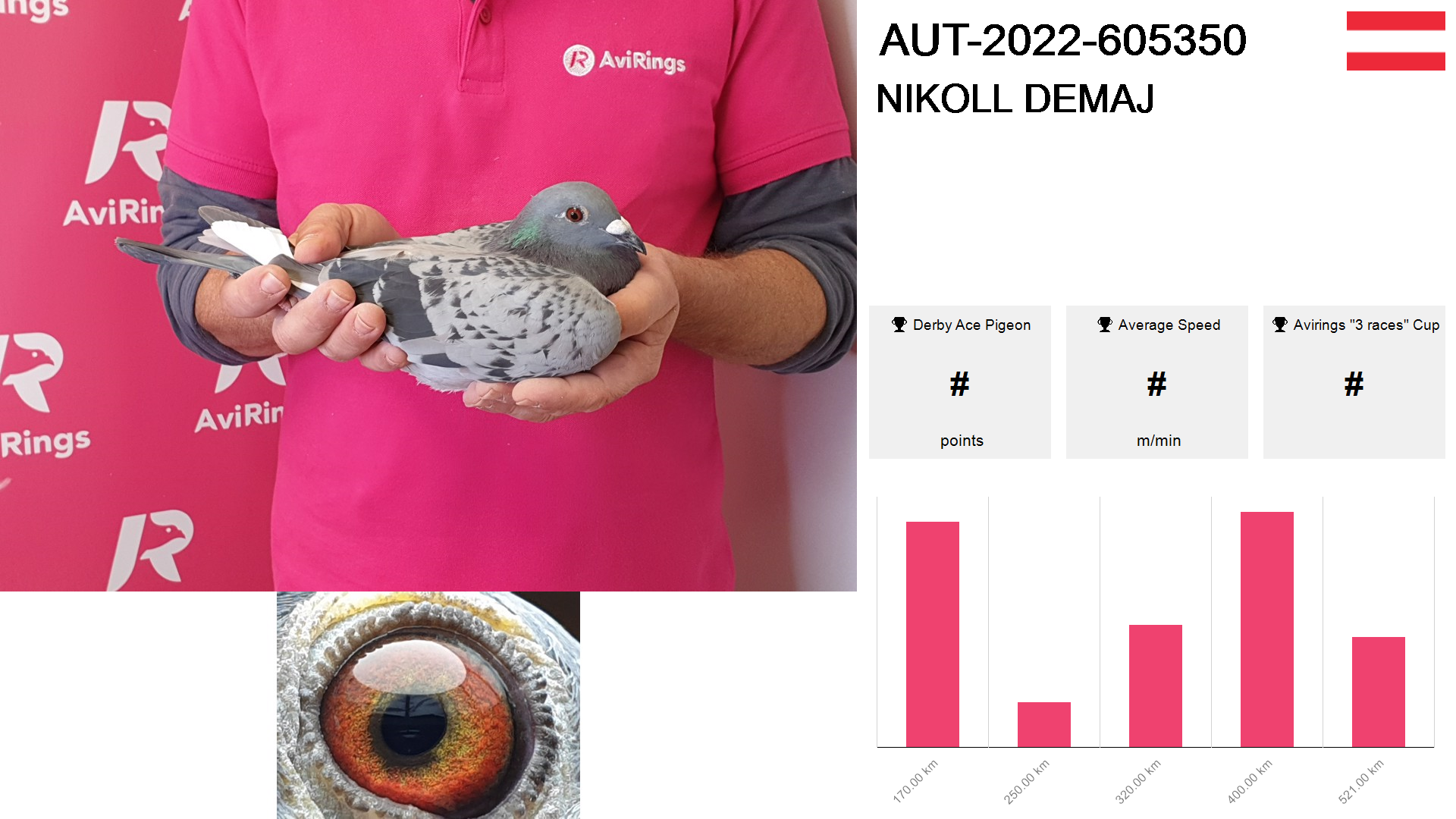 | Race | Position | Number of pigeons | Percent | Speed | Distance |