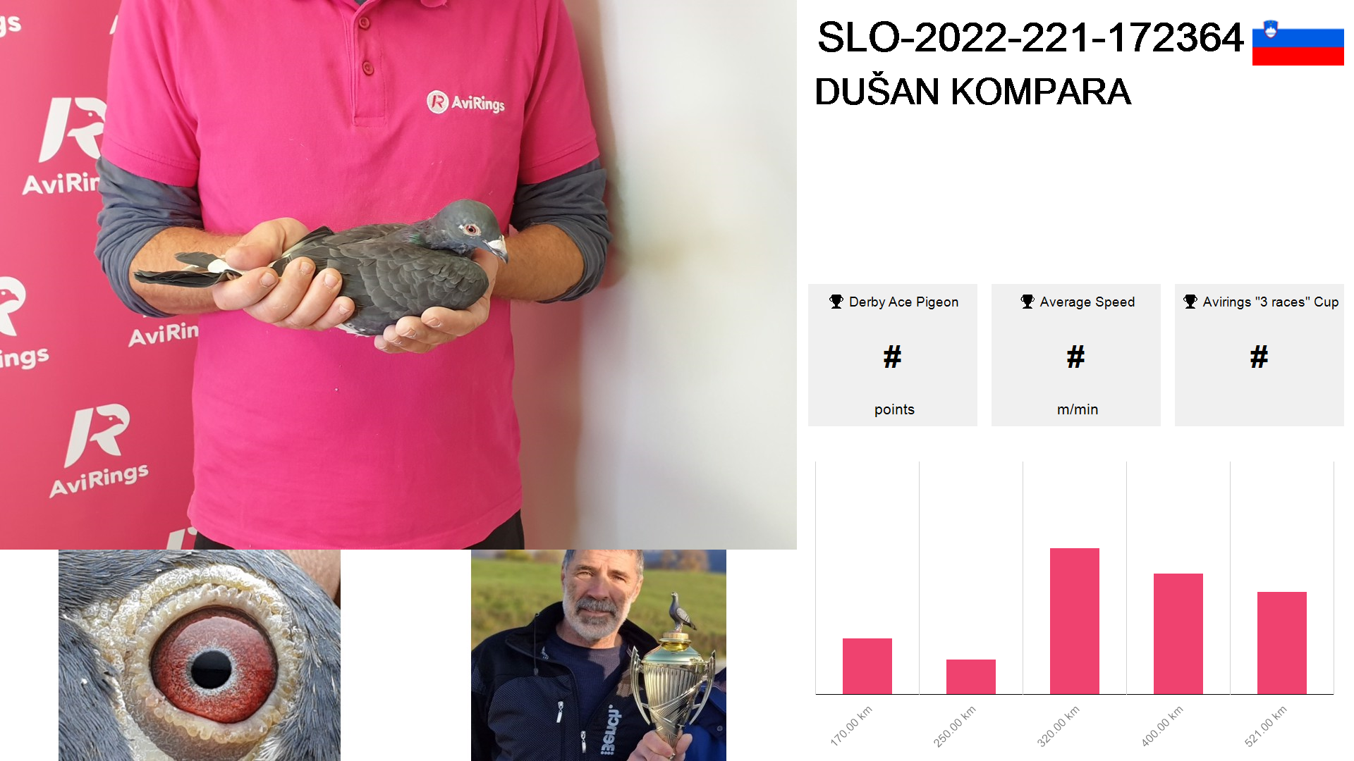 | Race | Position | Number of pigeons | Percent | Speed | Distance |