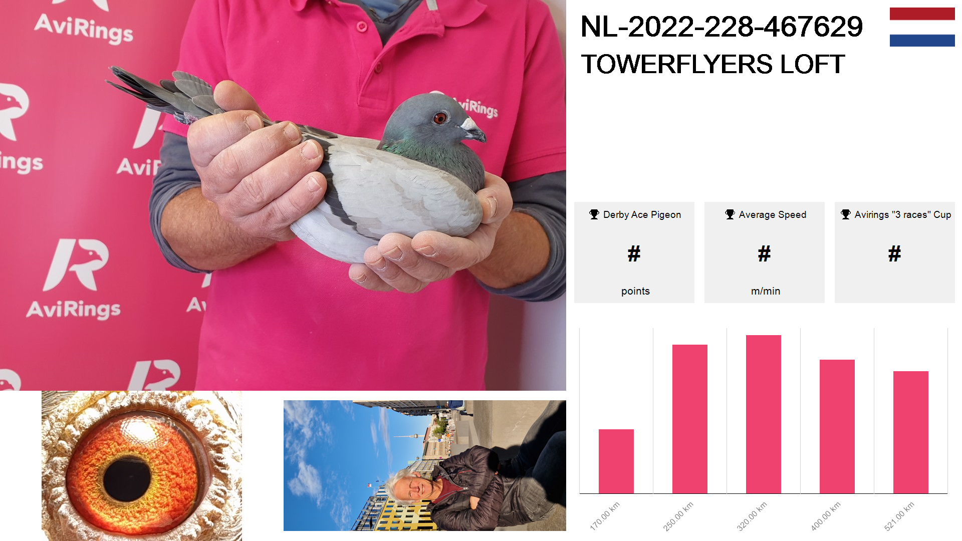 | Race | Position | Number of pigeons | Percent | Speed | Distance |