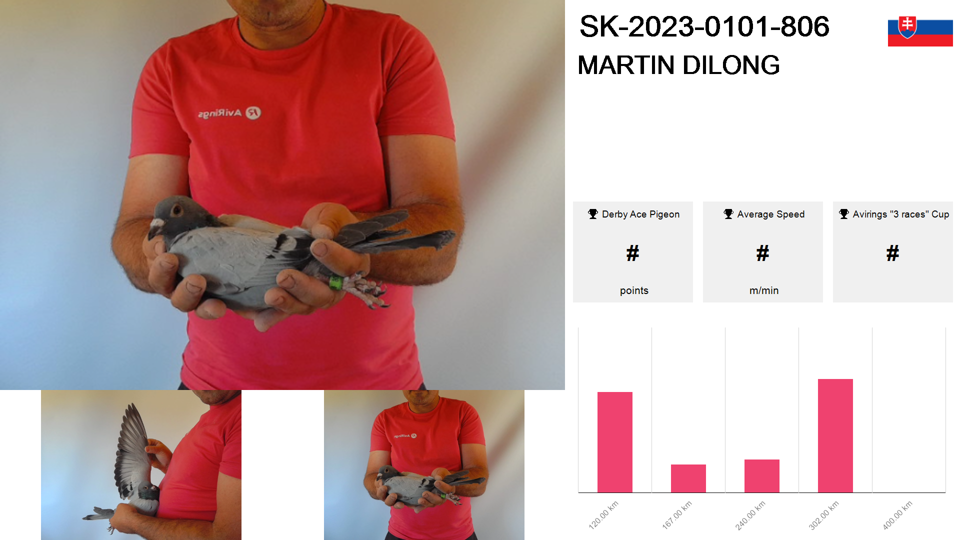 | Race | Position | Number of pigeons | Percent | Speed | Distance |