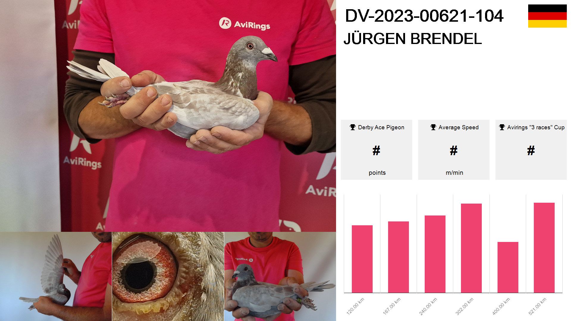 | Race | Position | Number of pigeons | Percent | Speed | Distance |