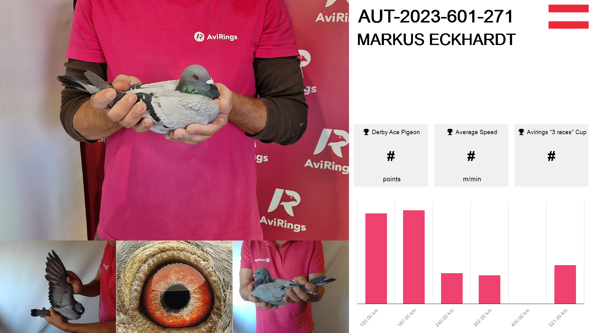 | Race | Position | Number of pigeons | Percent | Speed | Distance |