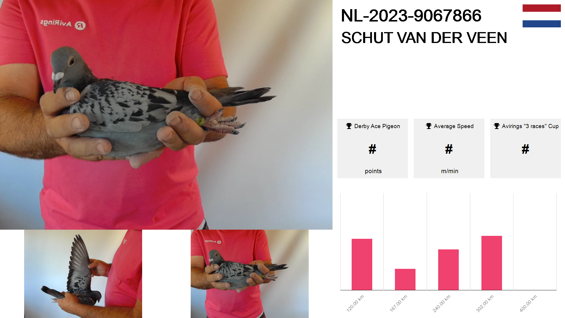 | Race | Position | Number of pigeons | Percent | Speed | Distance |