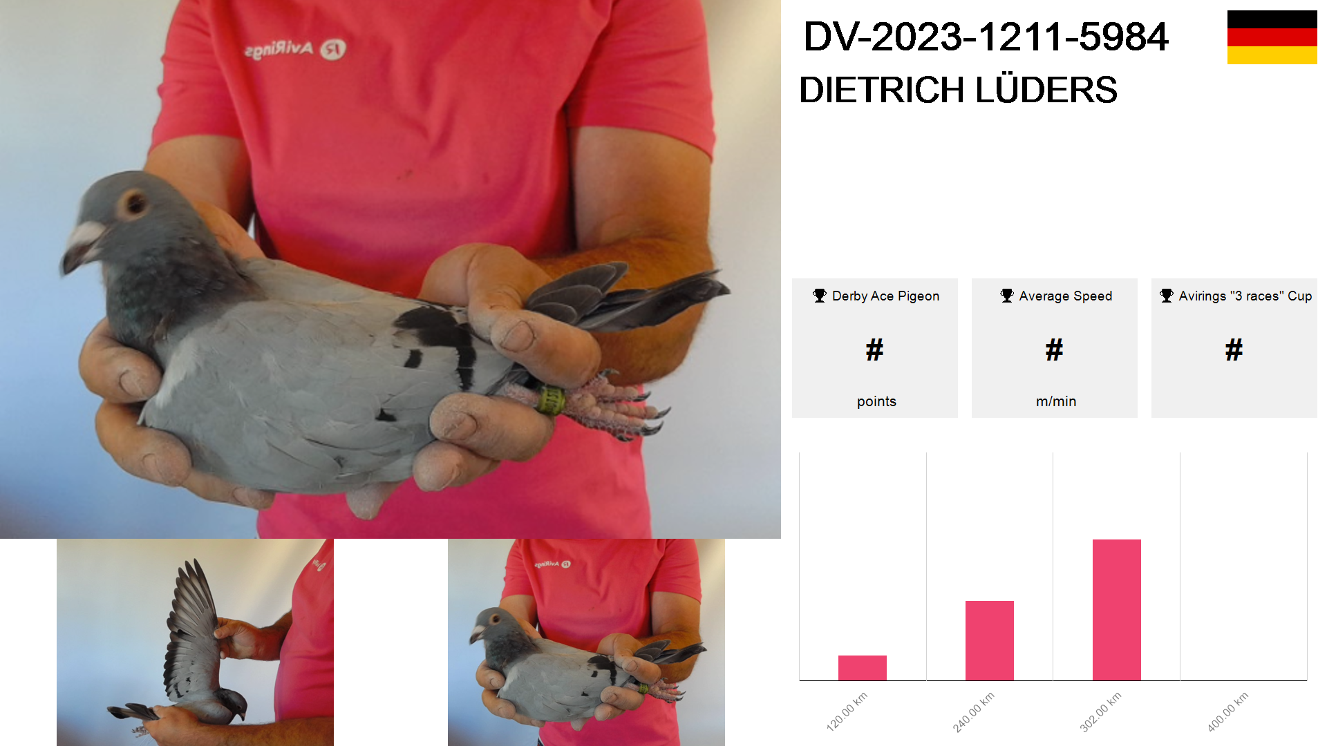 | Race | Position | Number of pigeons | Percent | Speed | Distance |