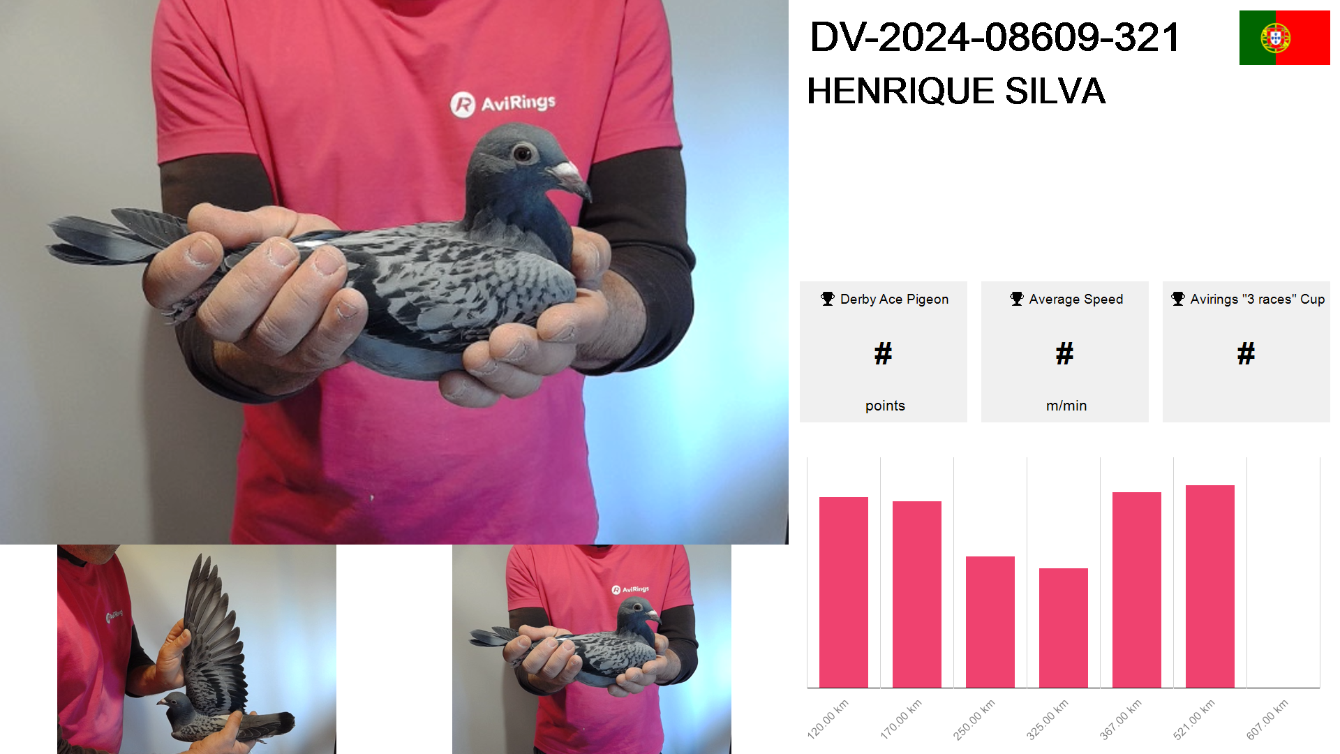 | Race | Position | Number of pigeons | Percent | Speed | Distance |