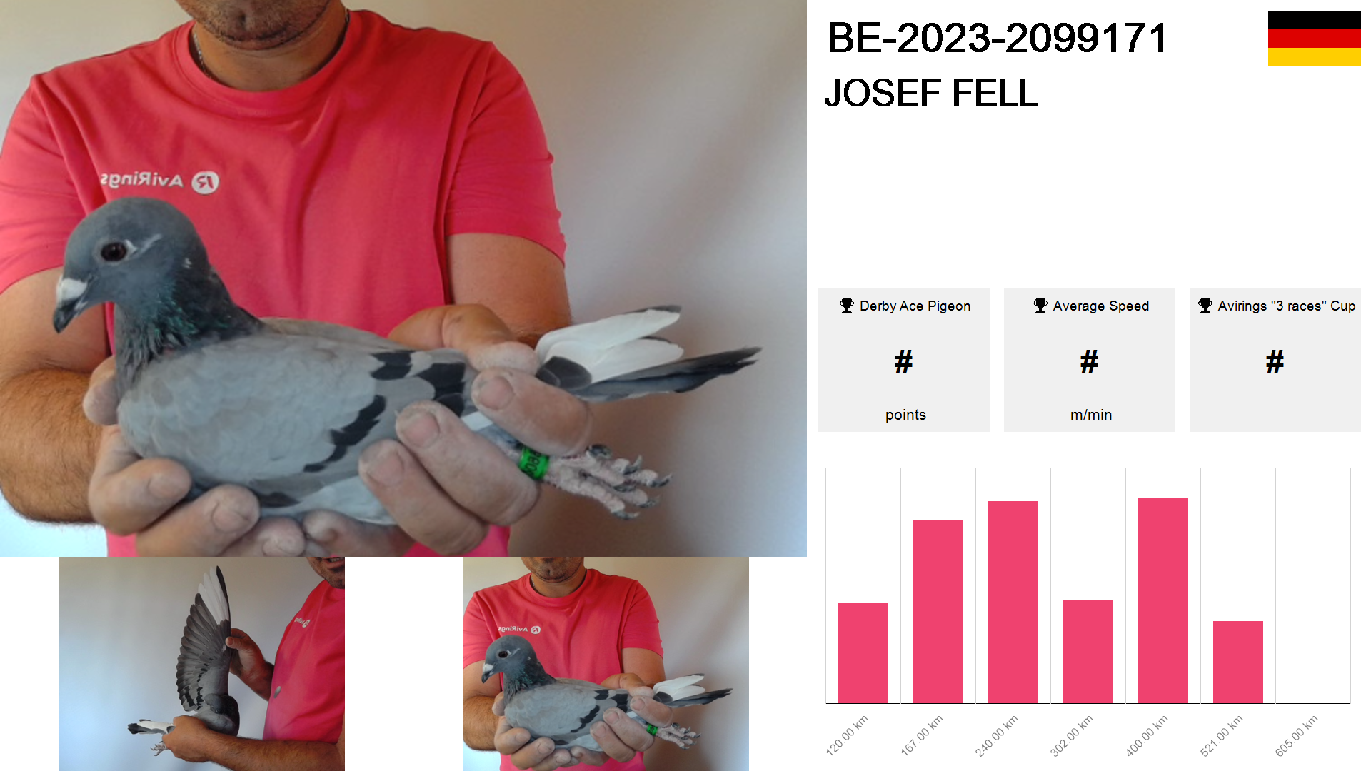 | Race | Position | Number of pigeons | Percent | Speed | Distance |