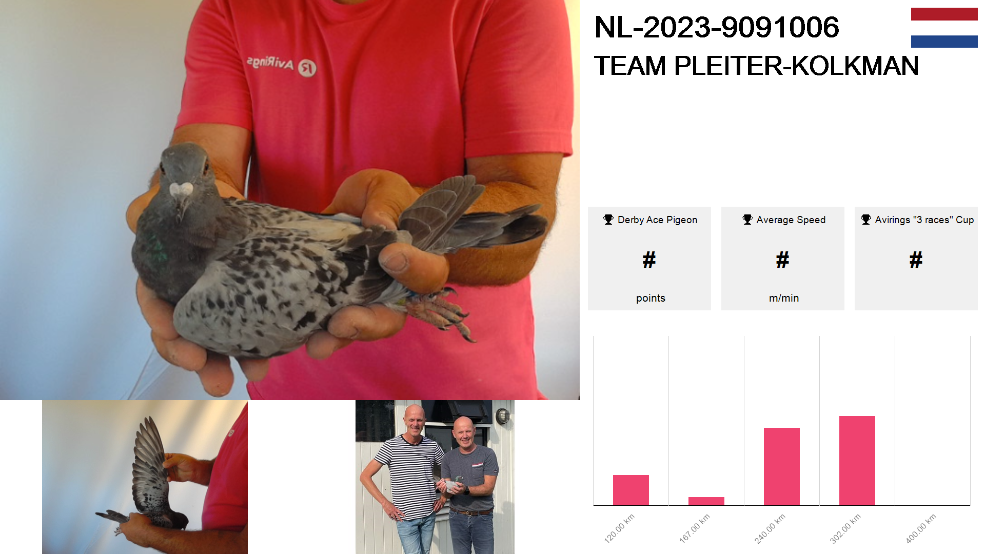 | Race | Position | Number of pigeons | Percent | Speed | Distance |