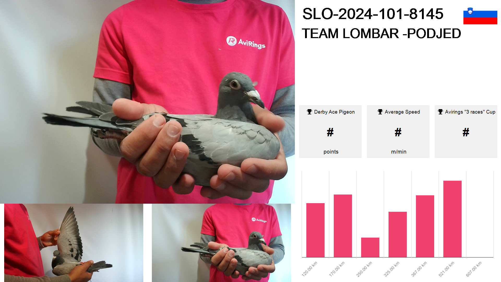 | Race | Position | Number of pigeons | Percent | Speed | Distance |