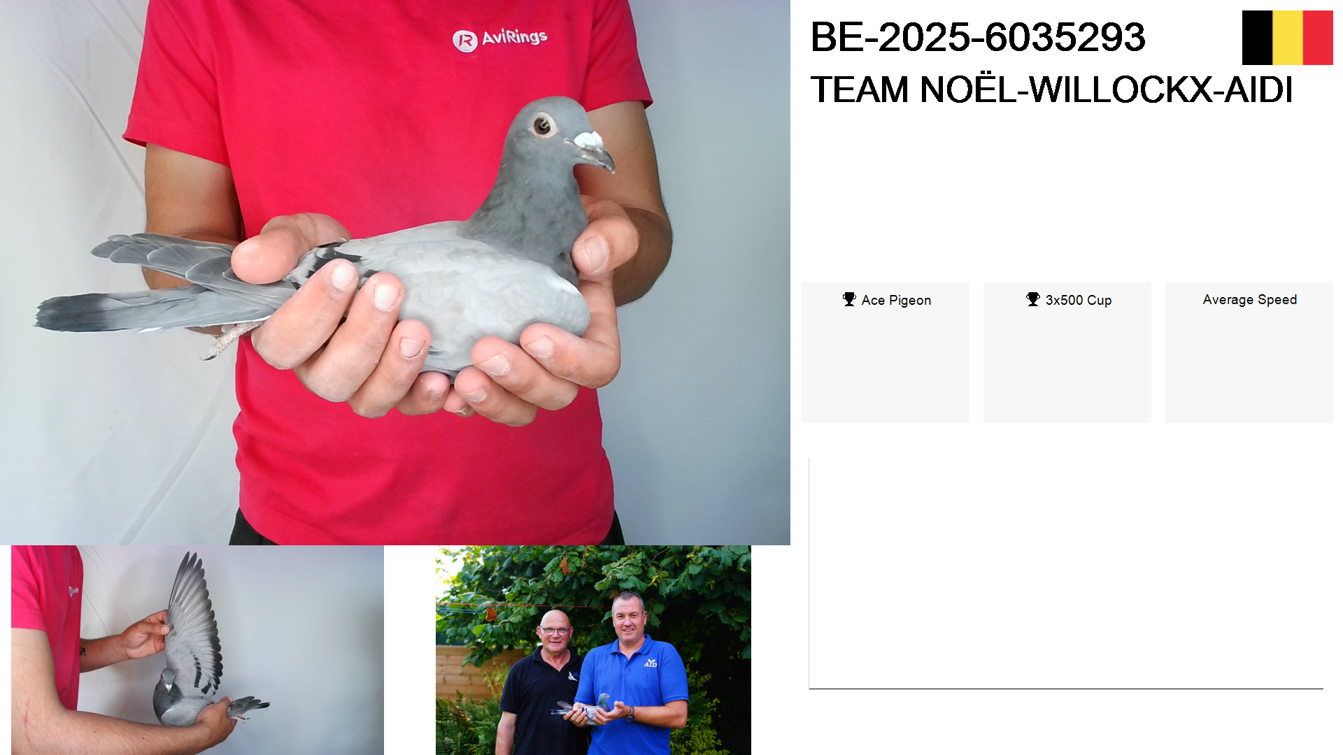 | Race | Position | Number of pigeons | Percent | Speed | Distance |