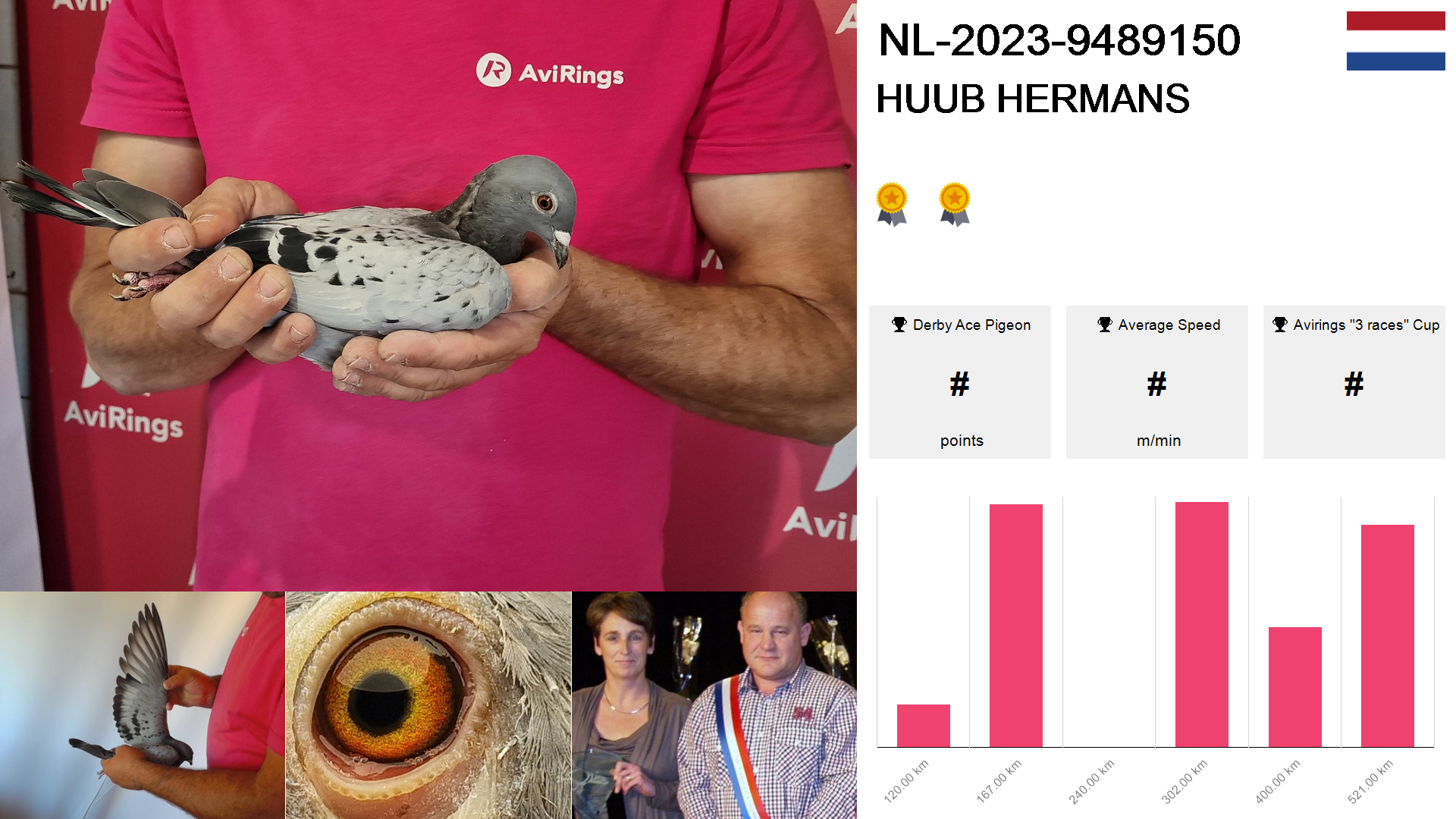| Race | Position | Number of pigeons | Percent | Speed | Distance |