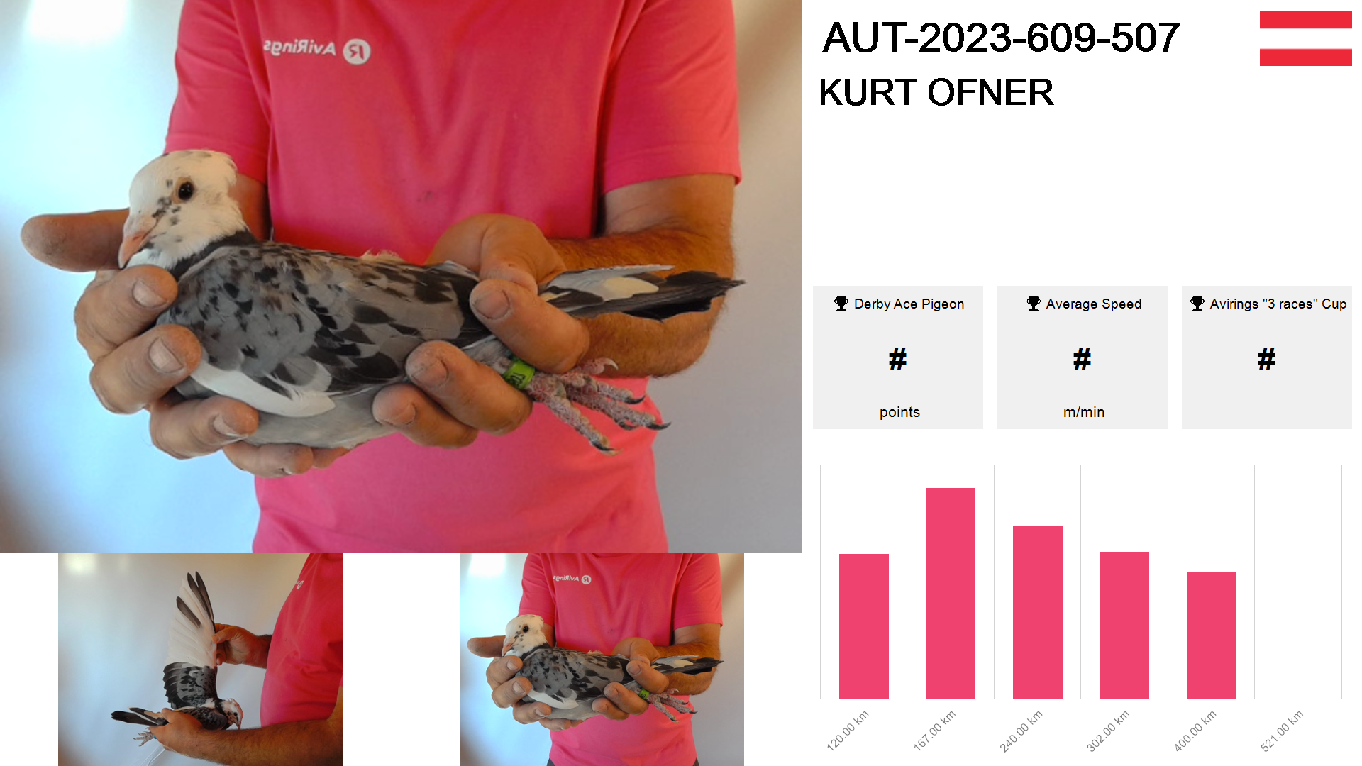 | Race | Position | Number of pigeons | Percent | Speed | Distance |