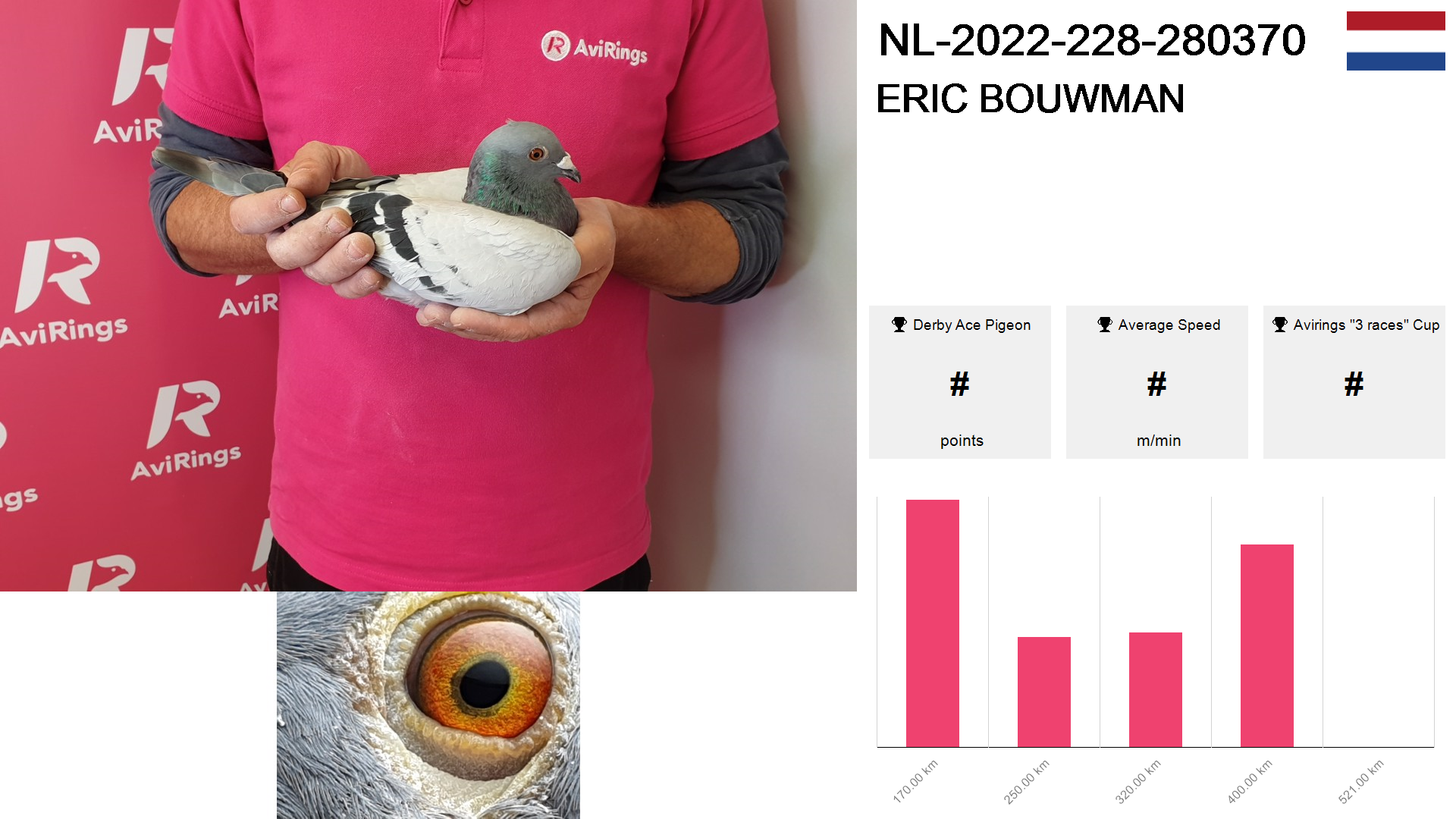| Race | Position | Number of pigeons | Percent | Speed | Distance |