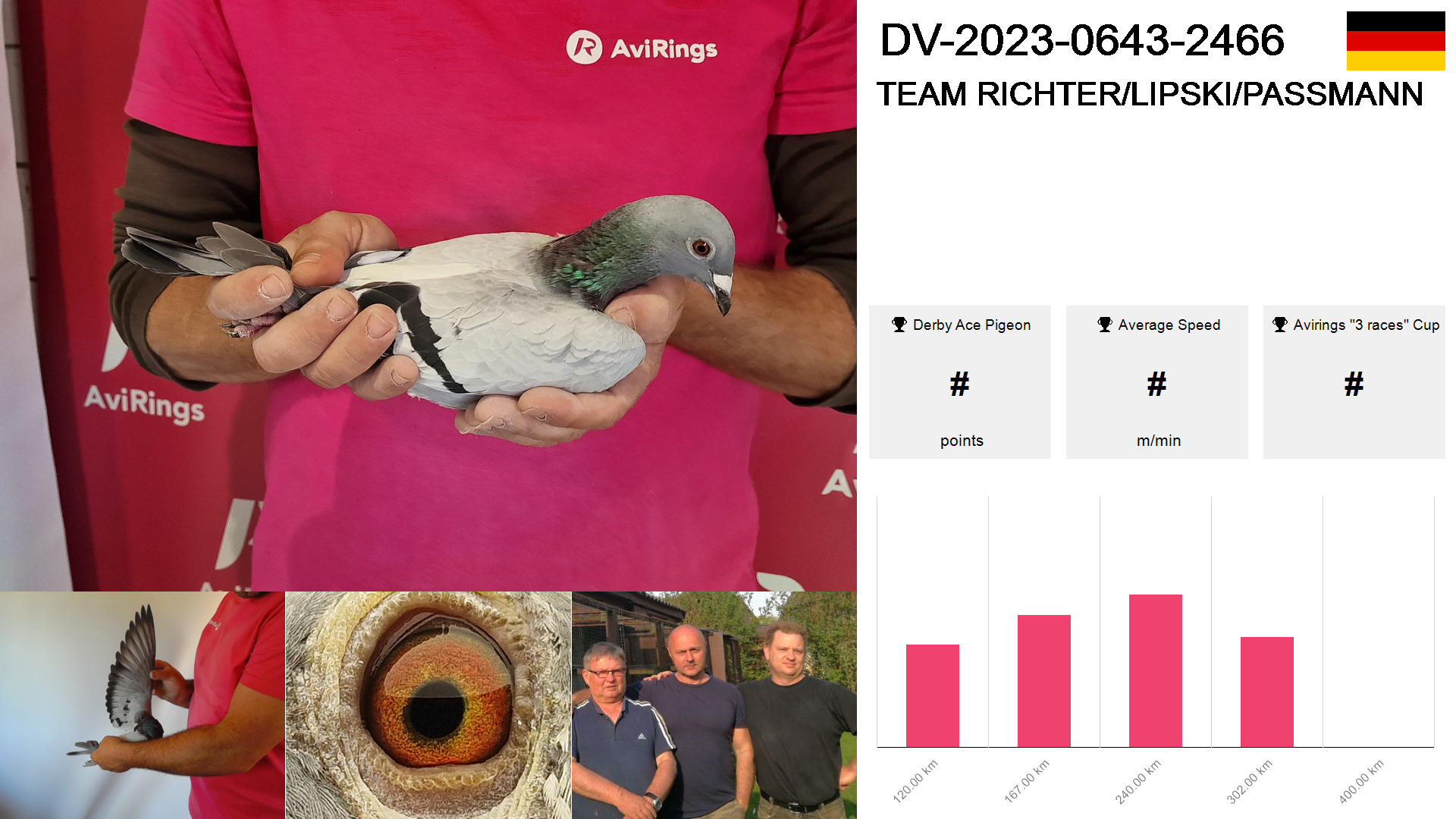| Race | Position | Number of pigeons | Percent | Speed | Distance |