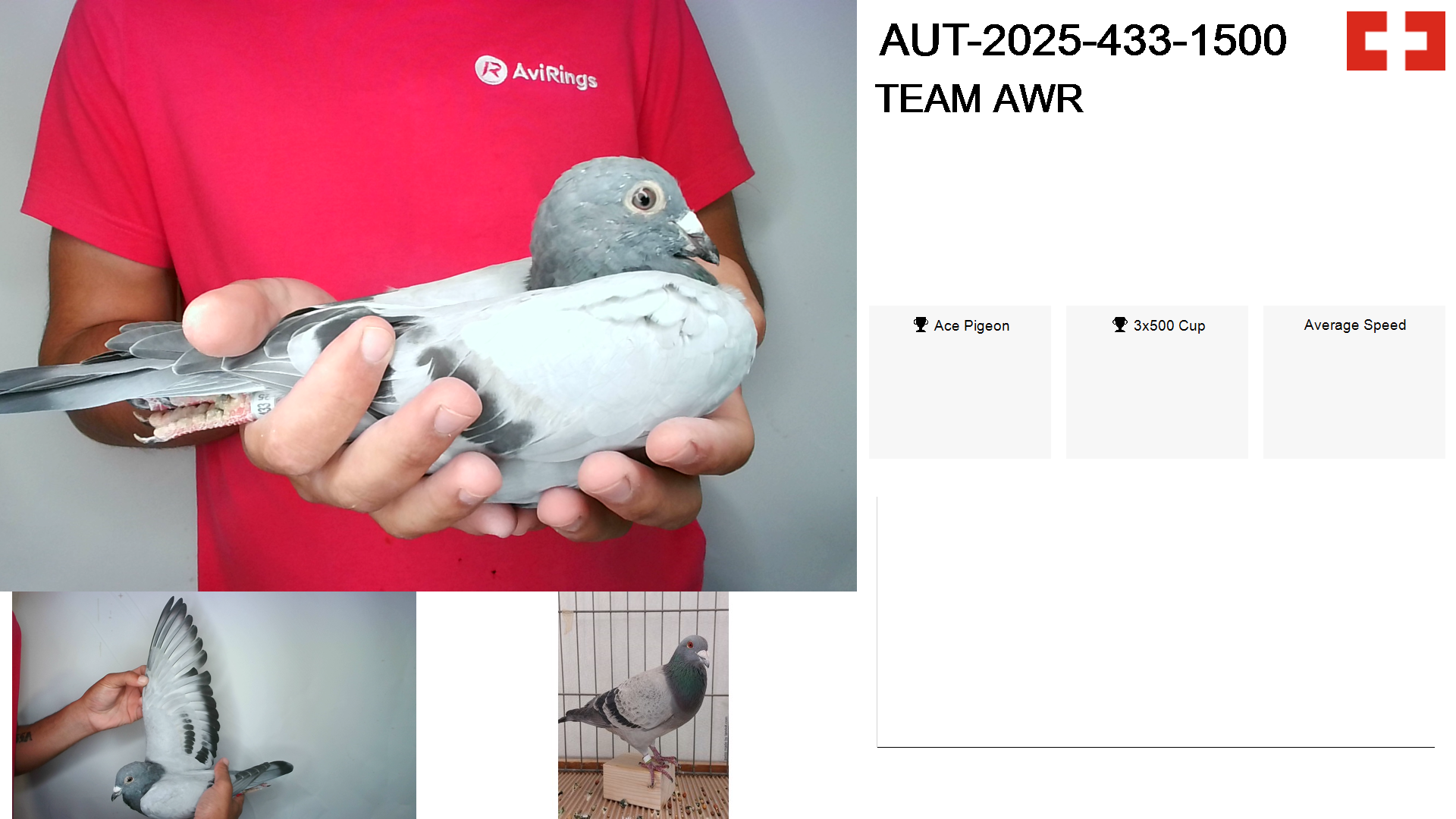 | Race | Position | Number of pigeons | Percent | Speed | Distance |