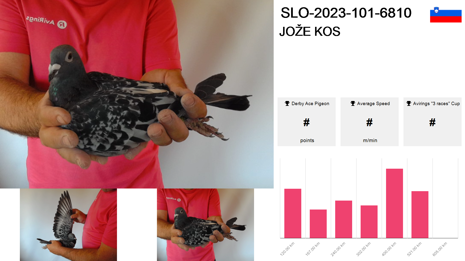| Race | Position | Number of pigeons | Percent | Speed | Distance |