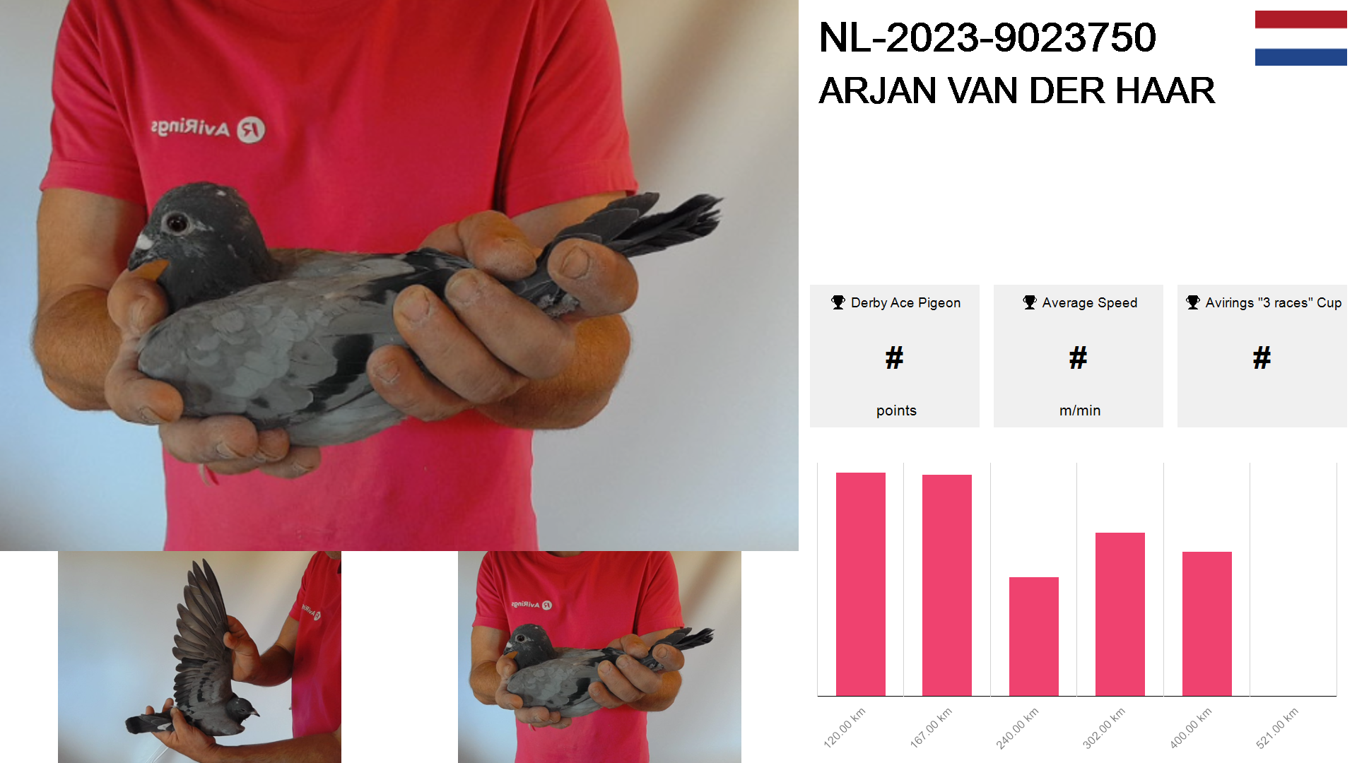 | Race | Position | Number of pigeons | Percent | Speed | Distance |