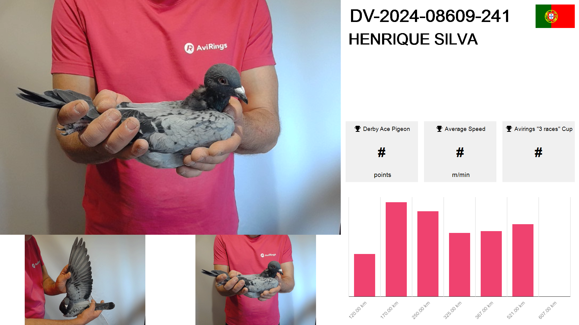 | Race | Position | Number of pigeons | Percent | Speed | Distance |