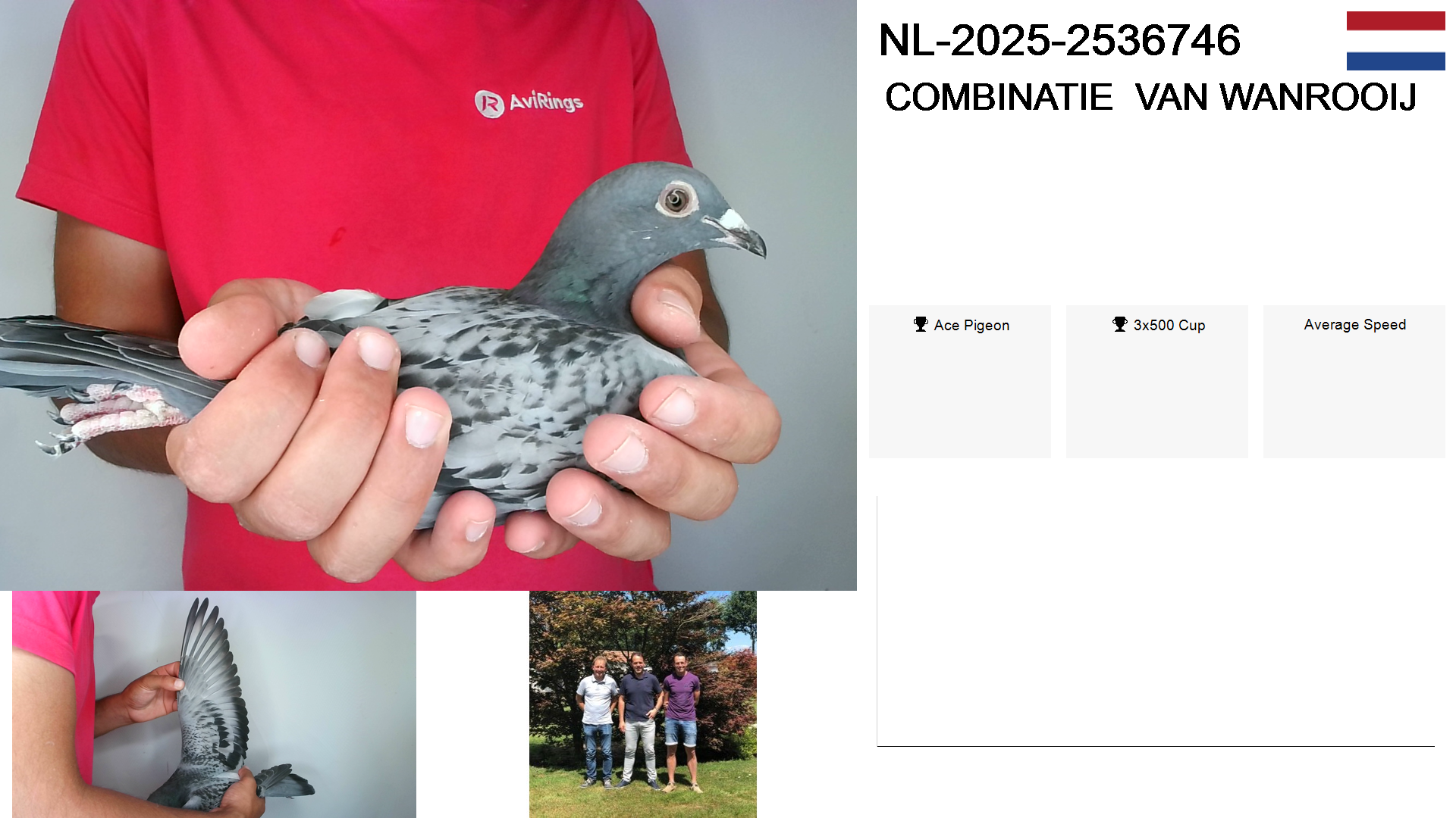 | Race | Position | Number of pigeons | Percent | Speed | Distance |