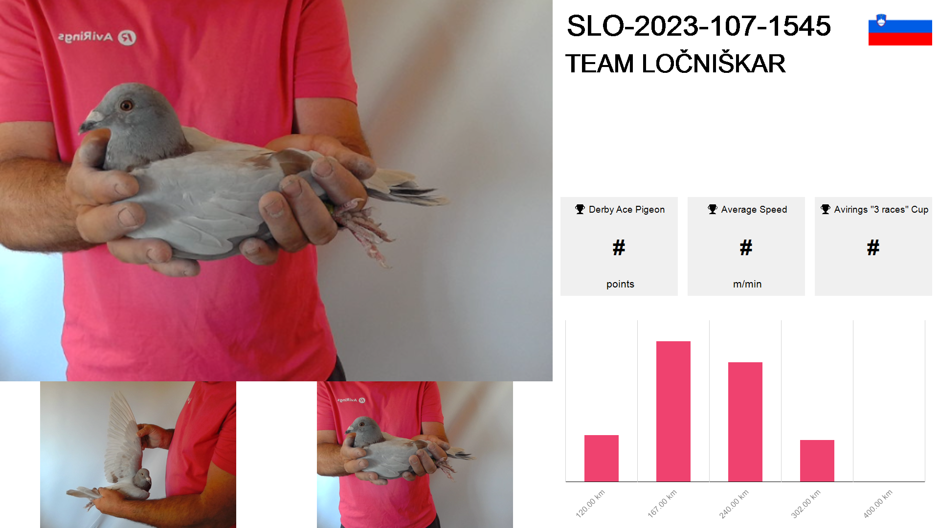 | Race | Position | Number of pigeons | Percent | Speed | Distance |