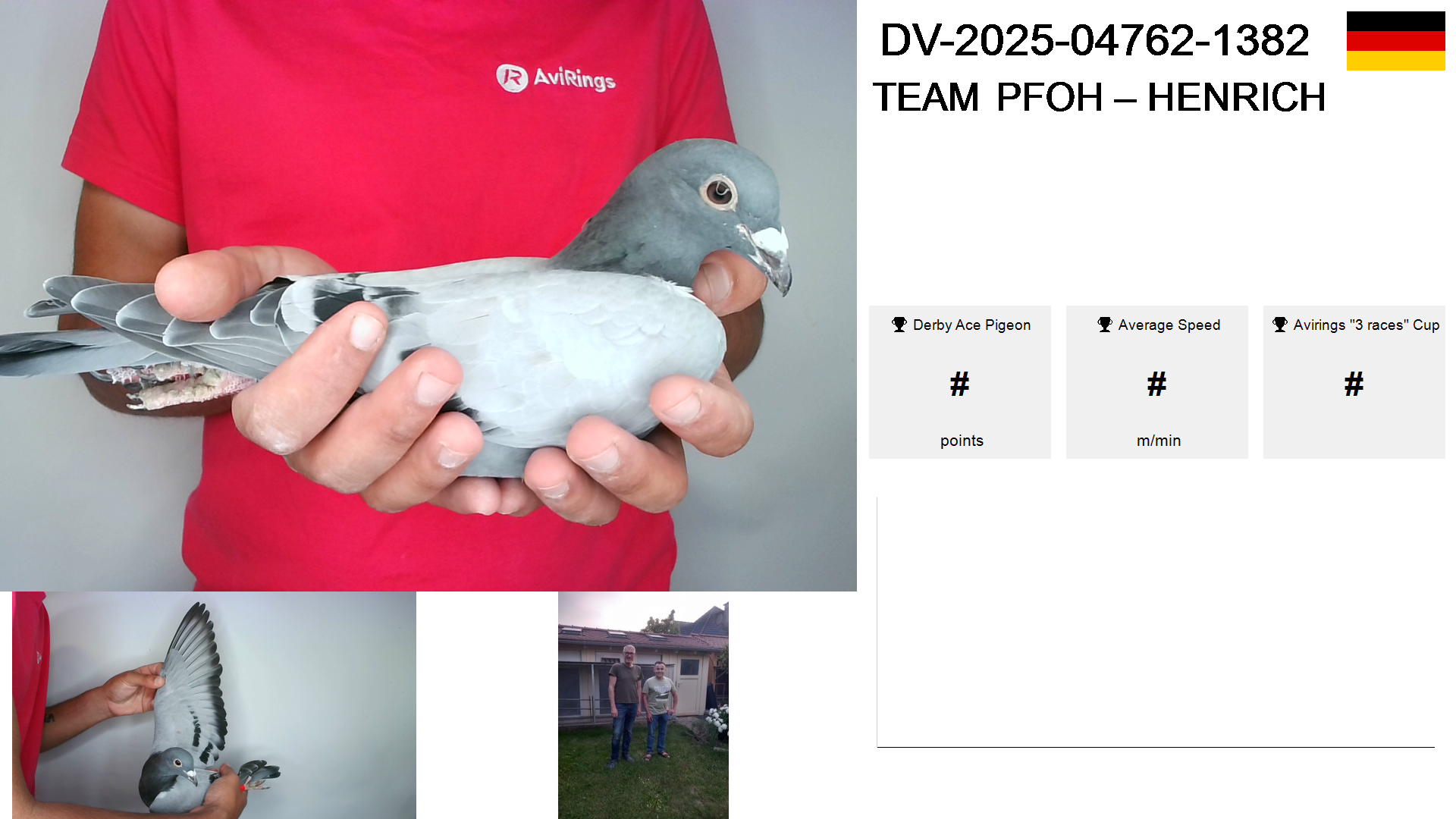 | Race | Position | Number of pigeons | Percent | Speed | Distance |
