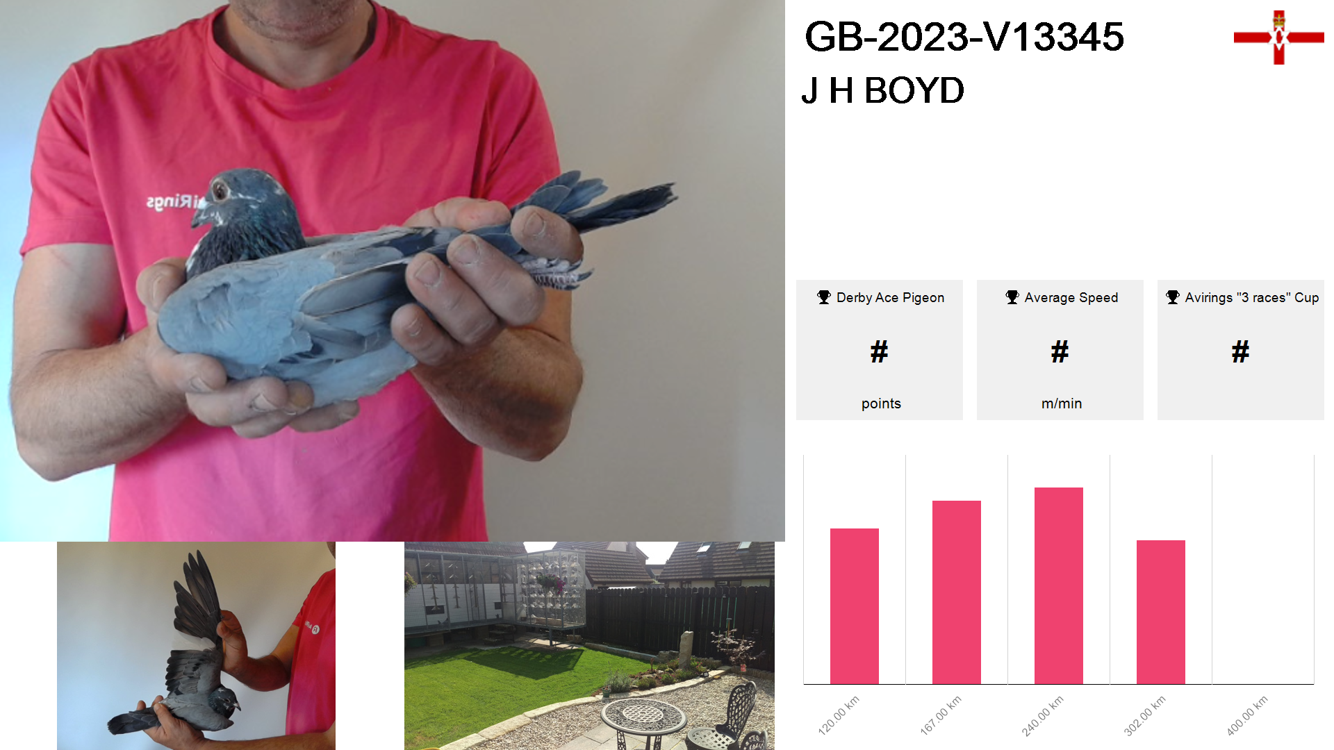 | Race | Position | Number of pigeons | Percent | Speed | Distance |