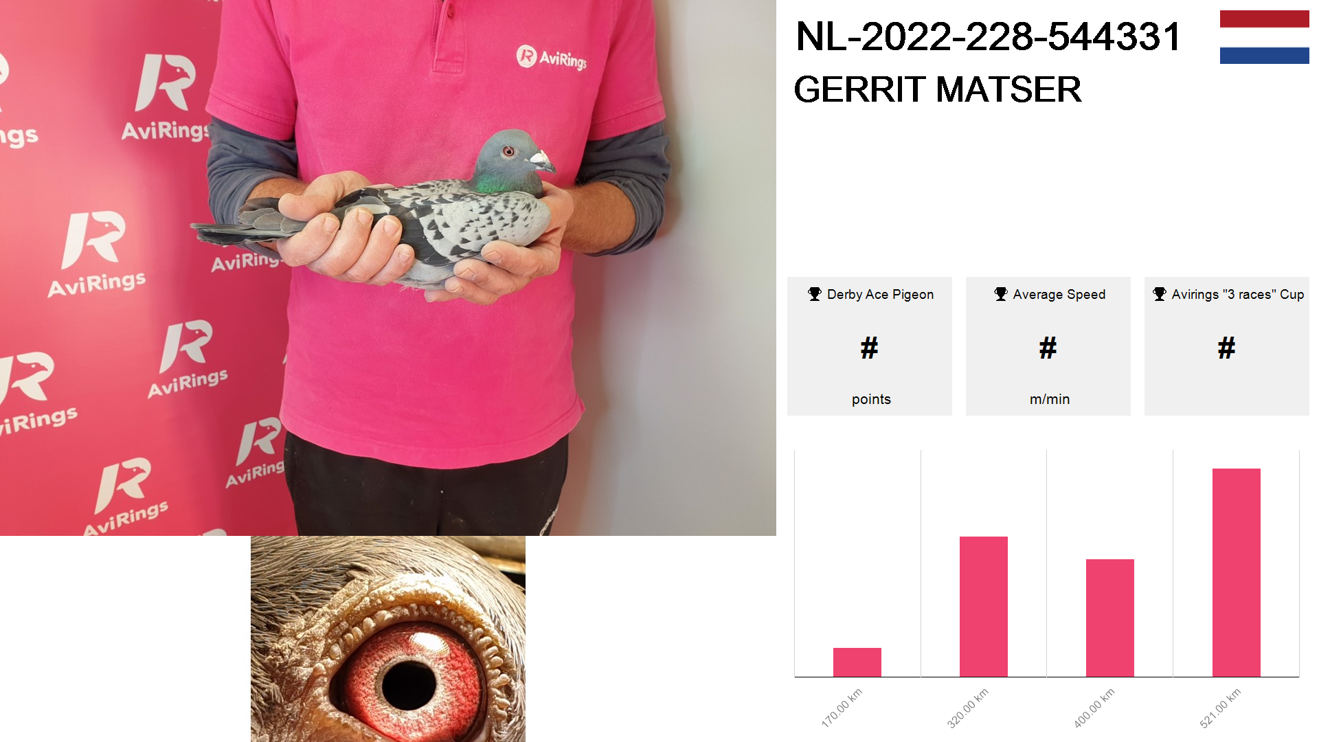 | Race | Position | Number of pigeons | Percent | Speed | Distance |