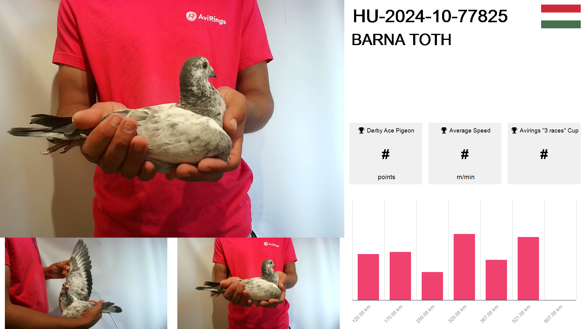 | Race | Position | Number of pigeons | Percent | Speed | Distance |
