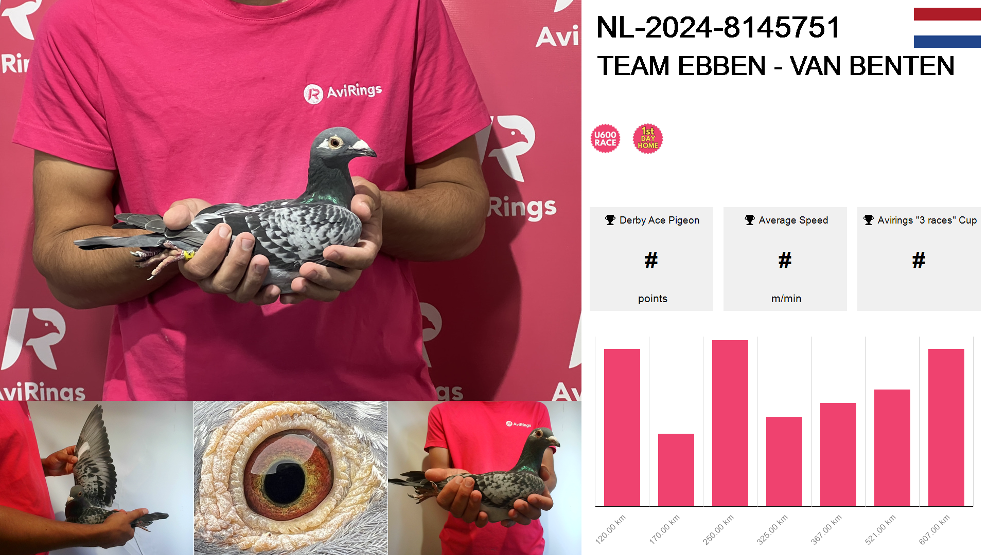 | Race | Position | Number of pigeons | Percent | Speed | Distance |