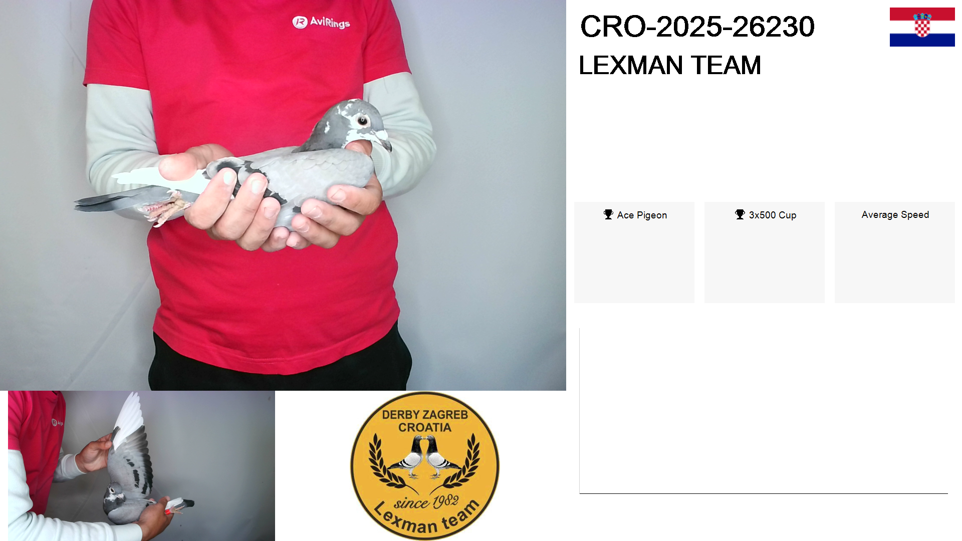 | Race | Position | Number of pigeons | Percent | Speed | Distance |
