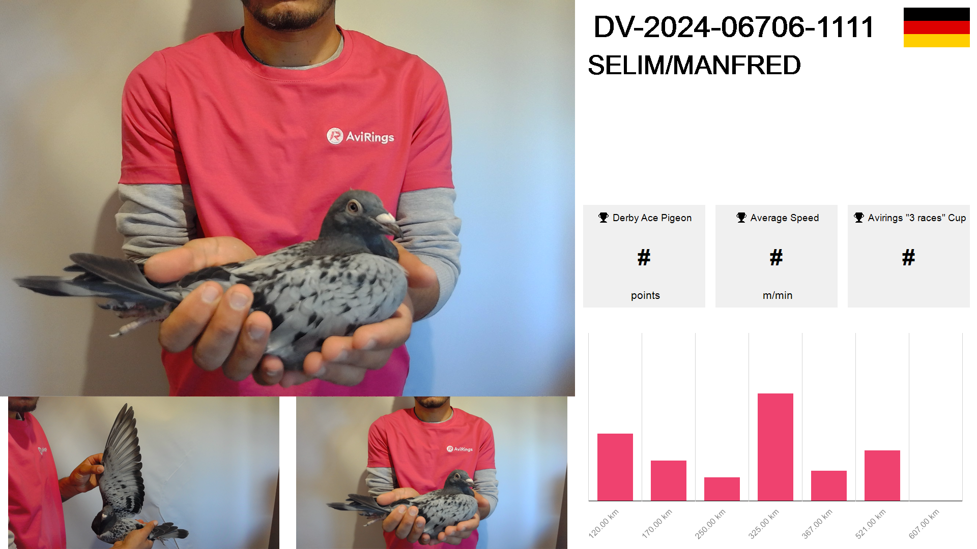 | Race | Position | Number of pigeons | Percent | Speed | Distance |