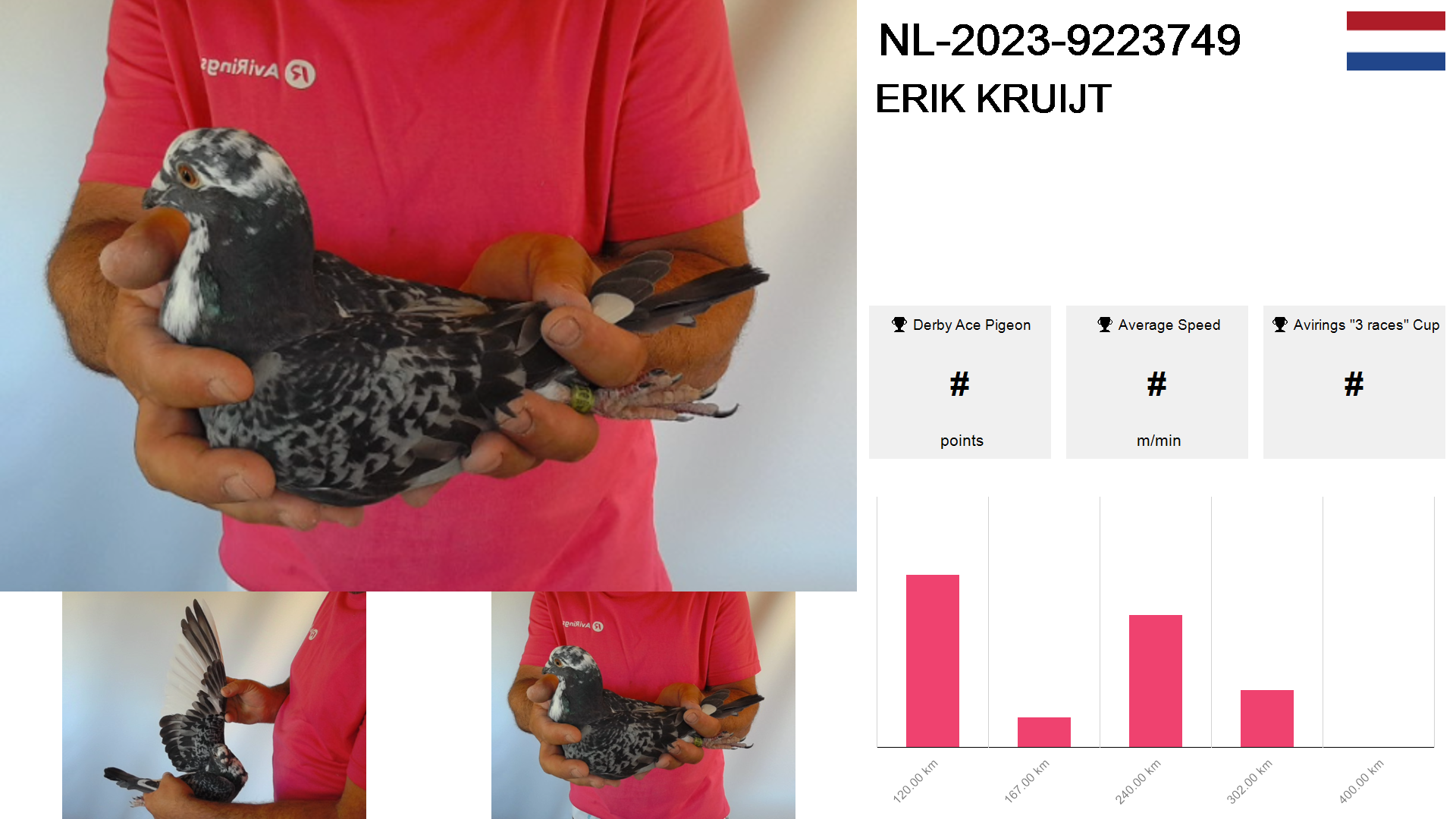 | Race | Position | Number of pigeons | Percent | Speed | Distance |