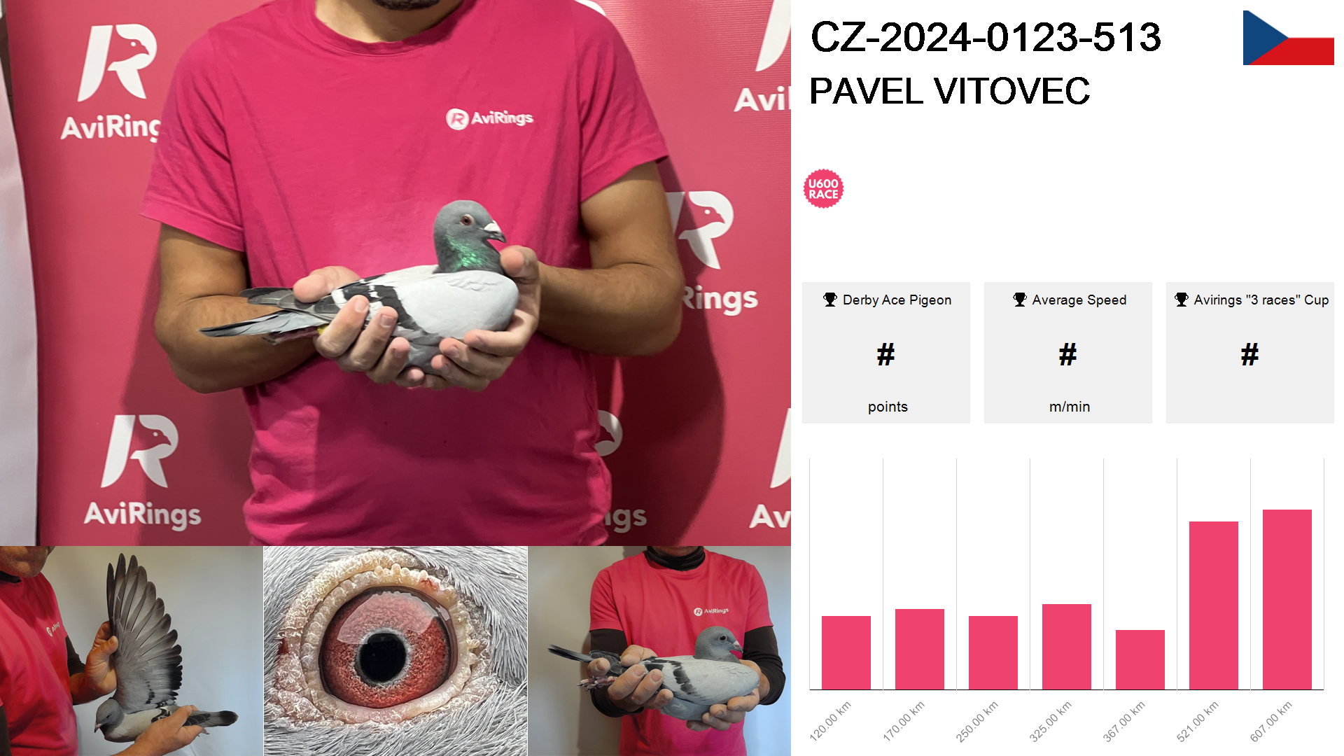 | Race | Position | Number of pigeons | Percent | Speed | Distance |