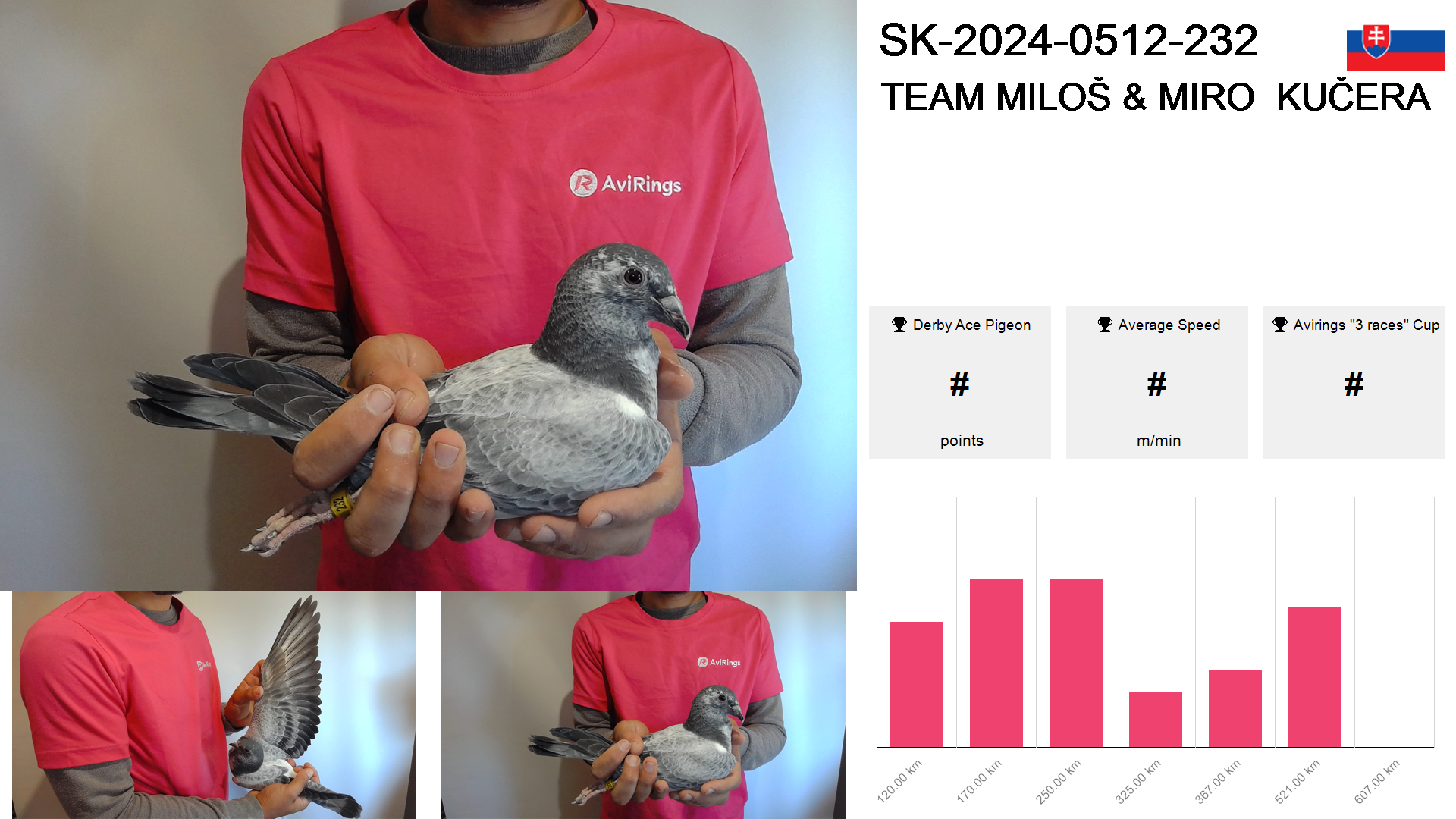 | Race | Position | Number of pigeons | Percent | Speed | Distance |