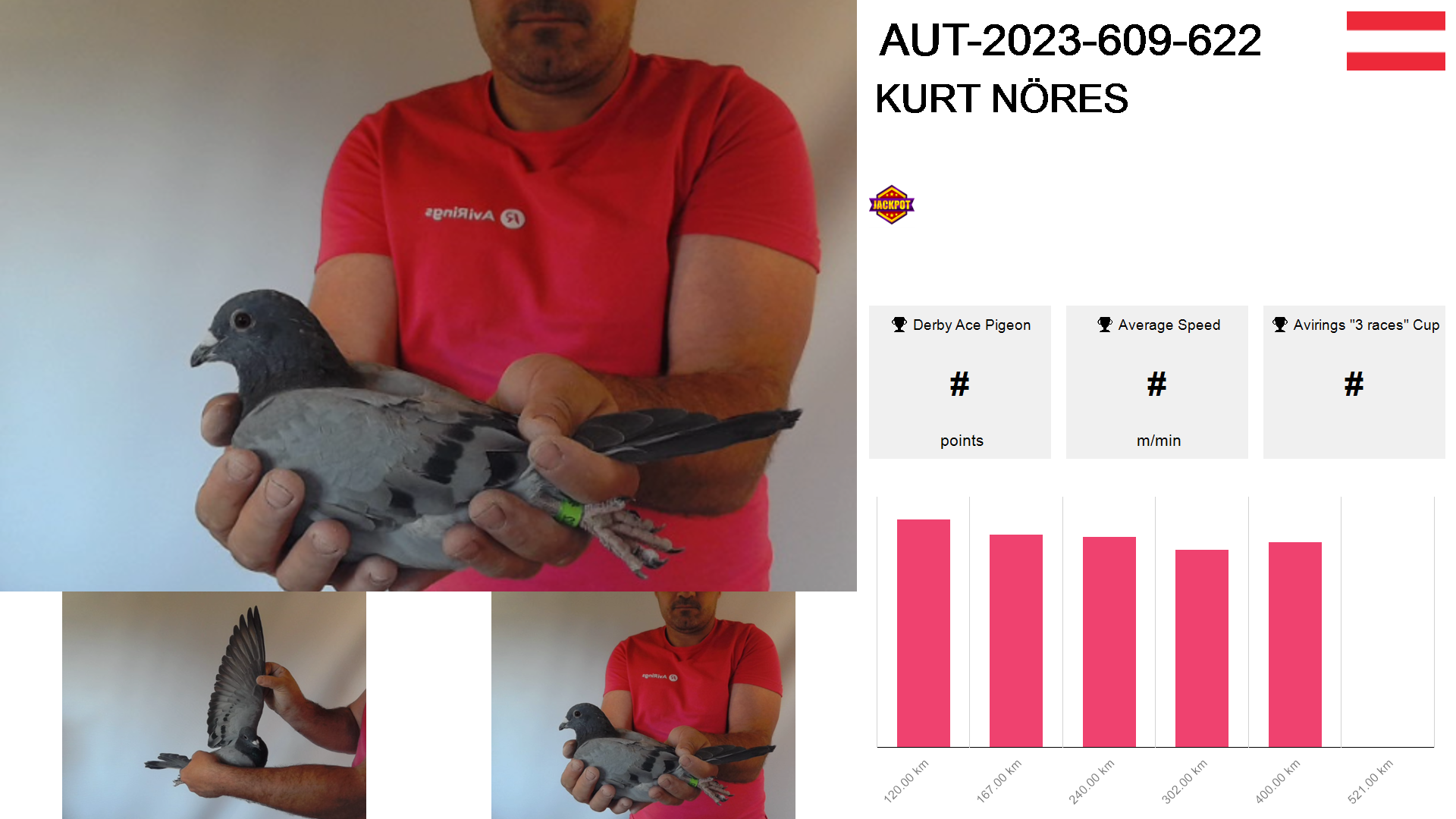 | Race | Position | Number of pigeons | Percent | Speed | Distance |