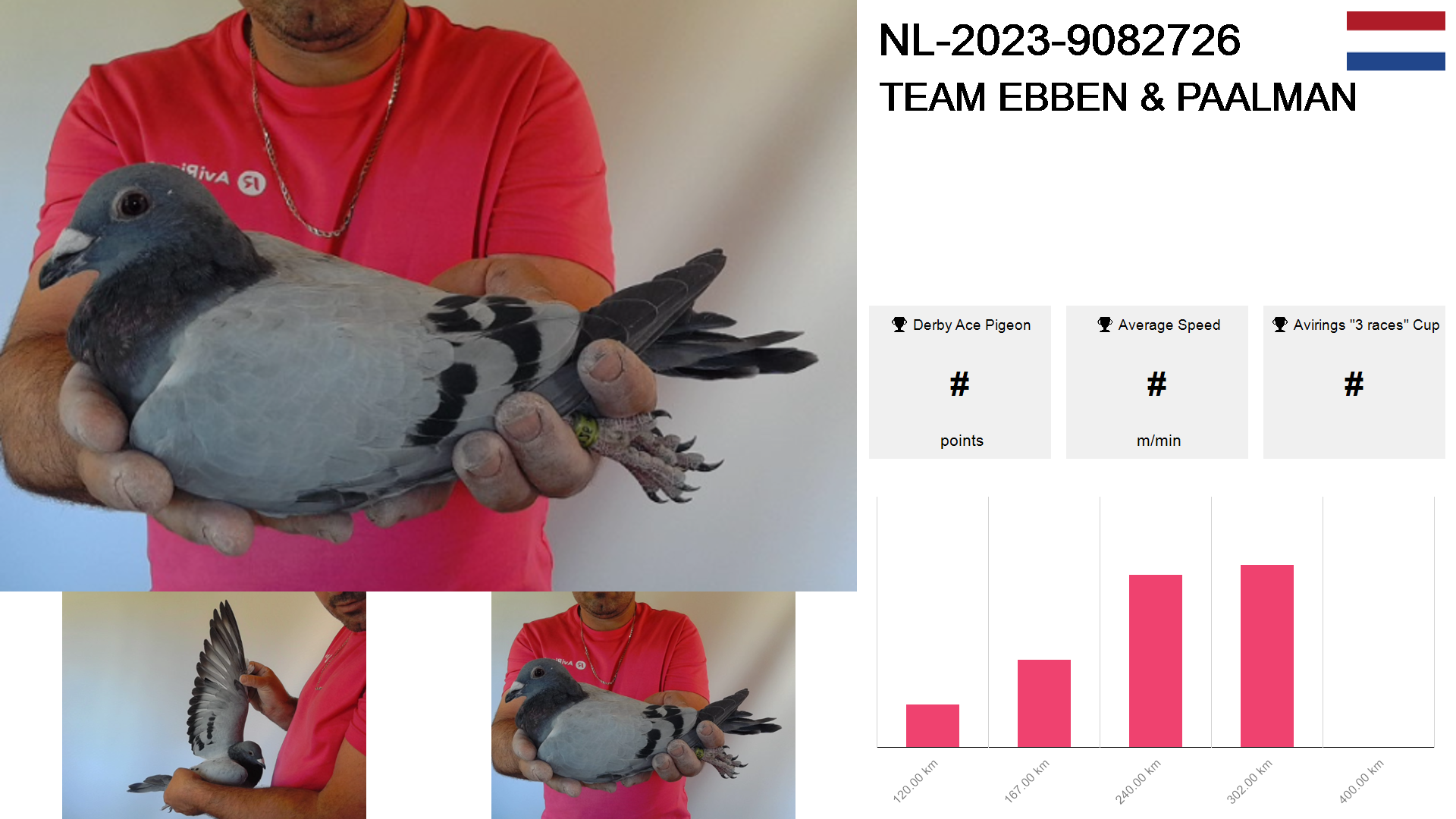 | Race | Position | Number of pigeons | Percent | Speed | Distance |