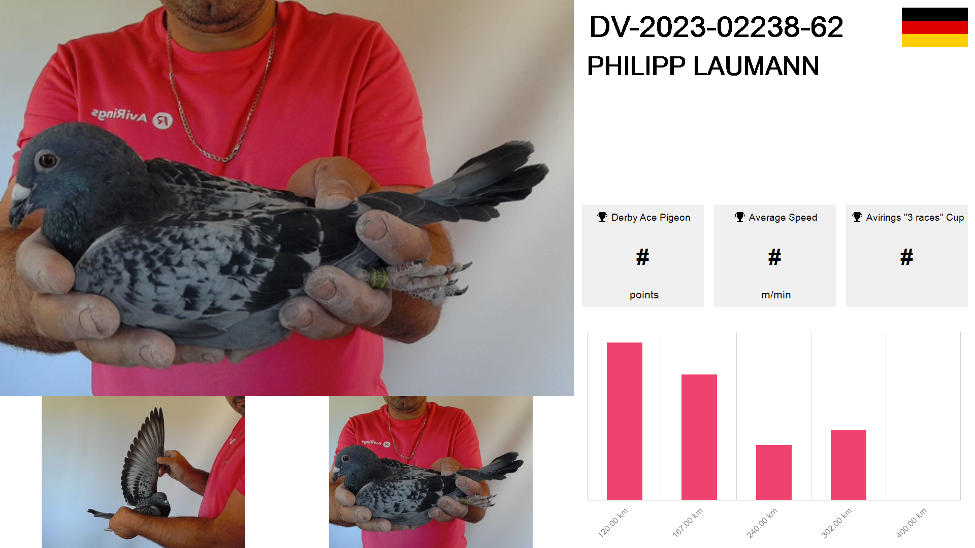 | Race | Position | Number of pigeons | Percent | Speed | Distance |