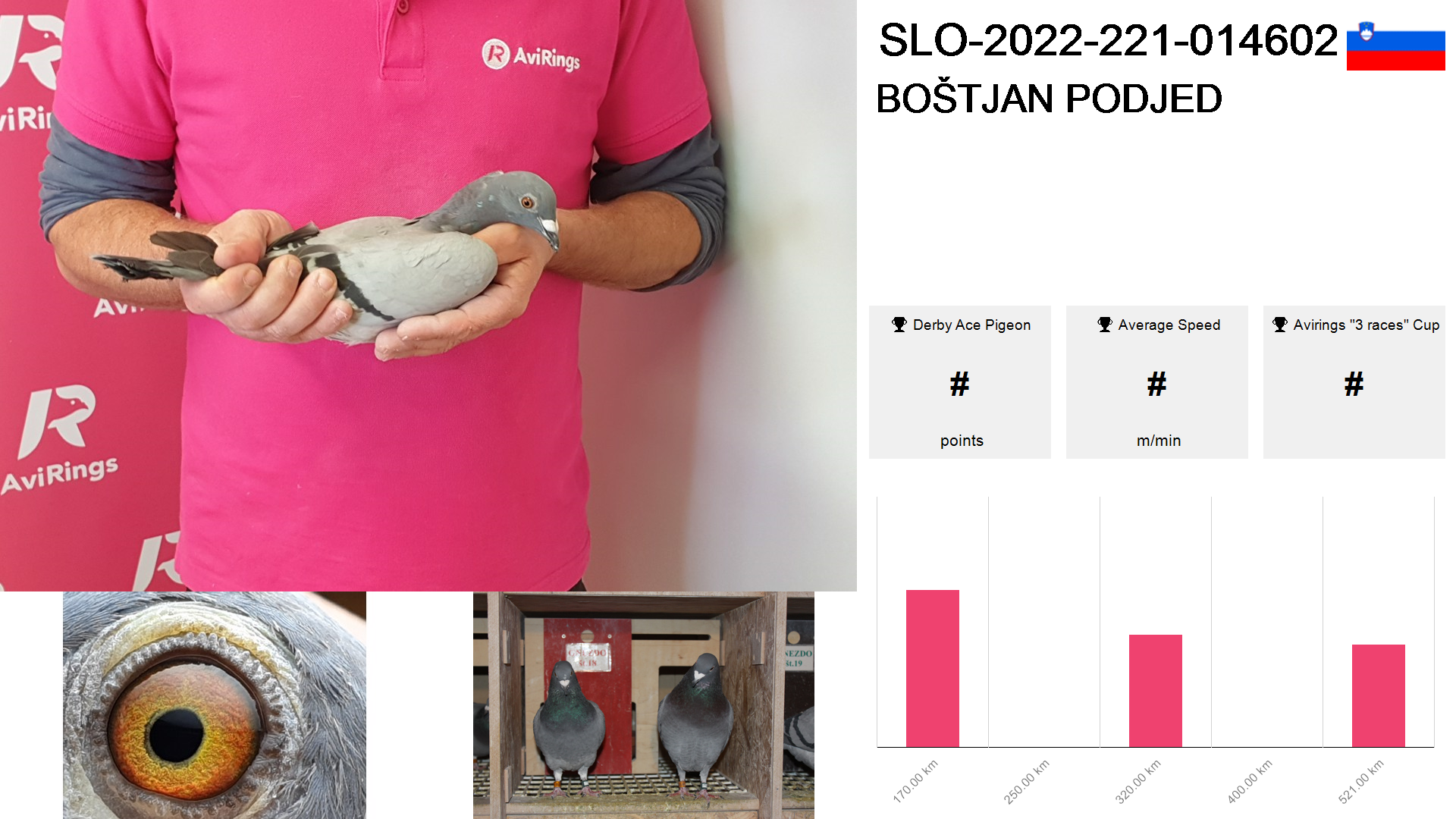 | Race | Position | Number of pigeons | Percent | Speed | Distance |