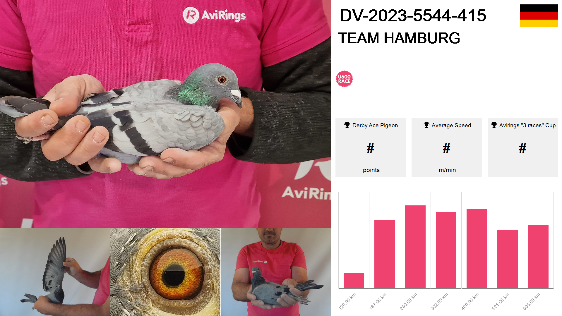 | Race | Position | Number of pigeons | Percent | Speed | Distance |