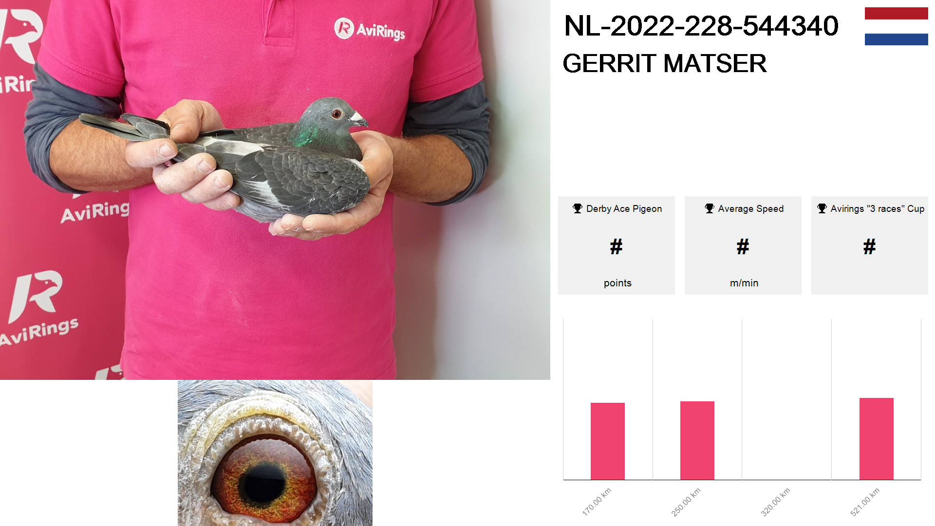 | Race | Position | Number of pigeons | Percent | Speed | Distance |