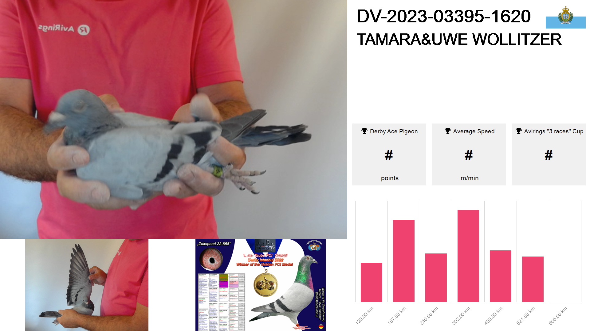 | Race | Position | Number of pigeons | Percent | Speed | Distance |