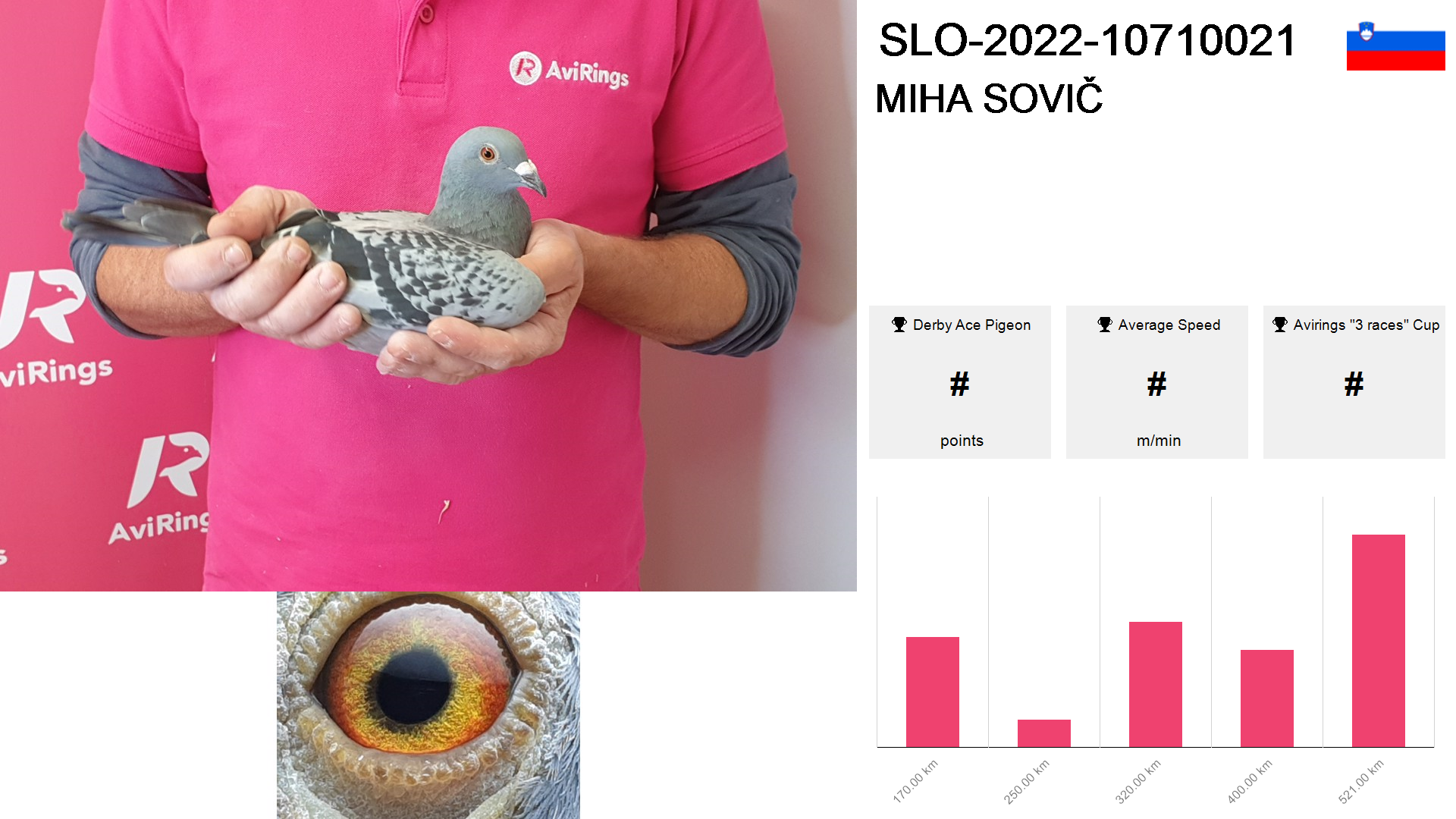 | Race | Position | Number of pigeons | Percent | Speed | Distance |