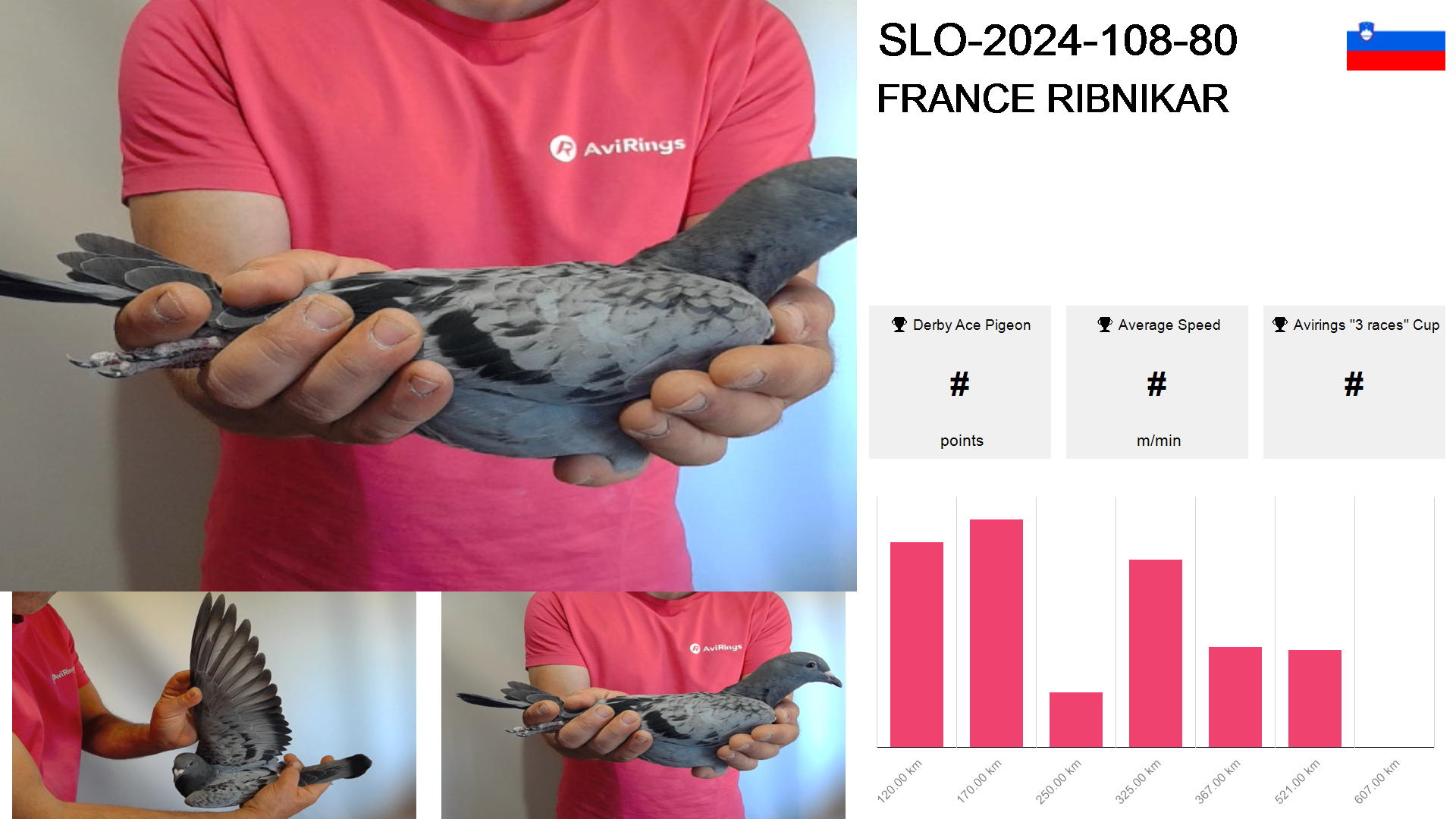 | Race | Position | Number of pigeons | Percent | Speed | Distance |