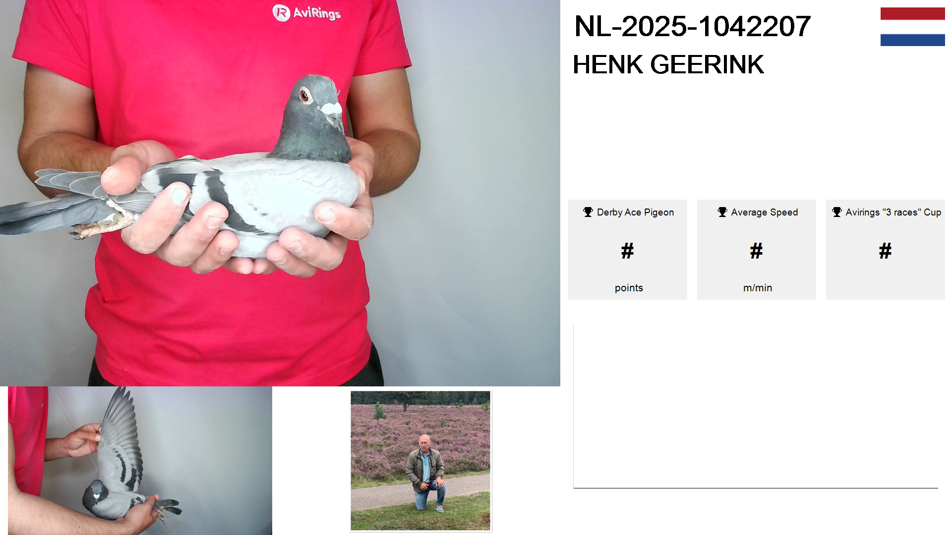 | Race | Position | Number of pigeons | Percent | Speed | Distance |