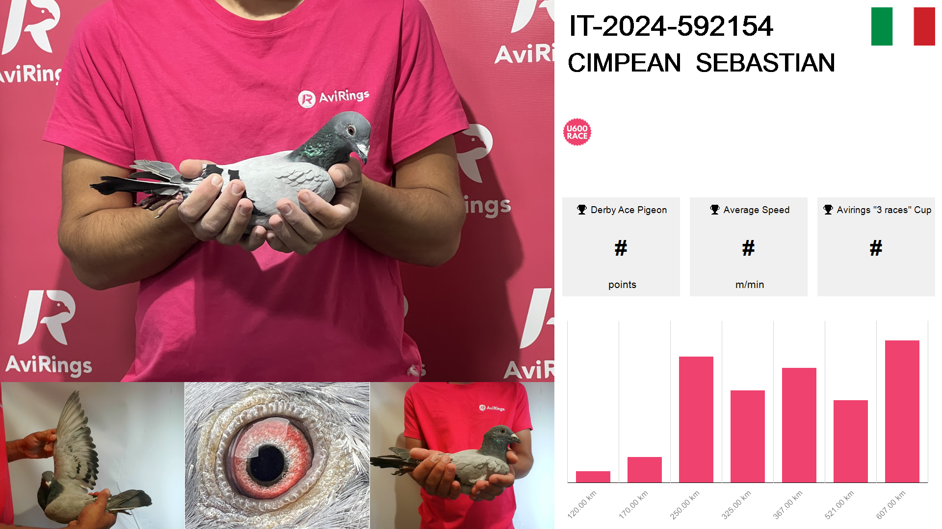 | Race | Position | Number of pigeons | Percent | Speed | Distance |