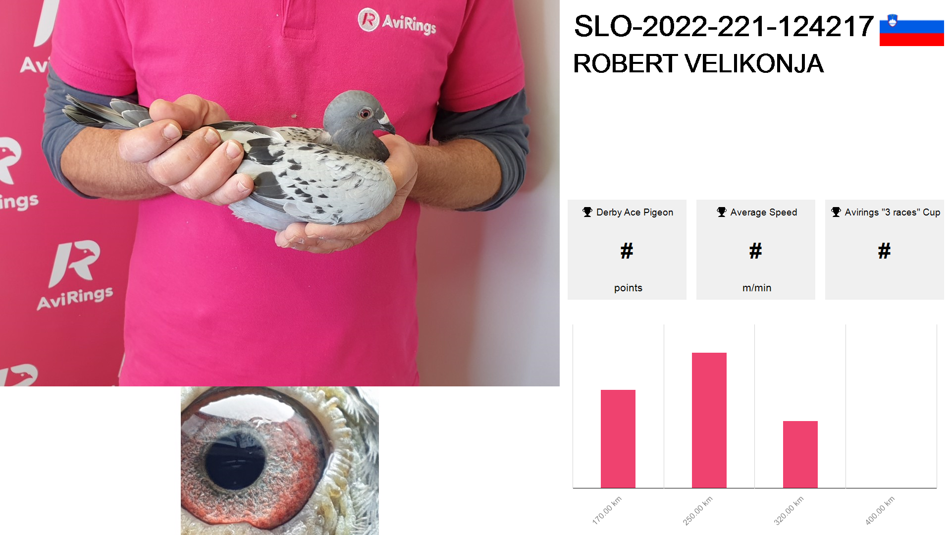 | Race | Position | Number of pigeons | Percent | Speed | Distance |
