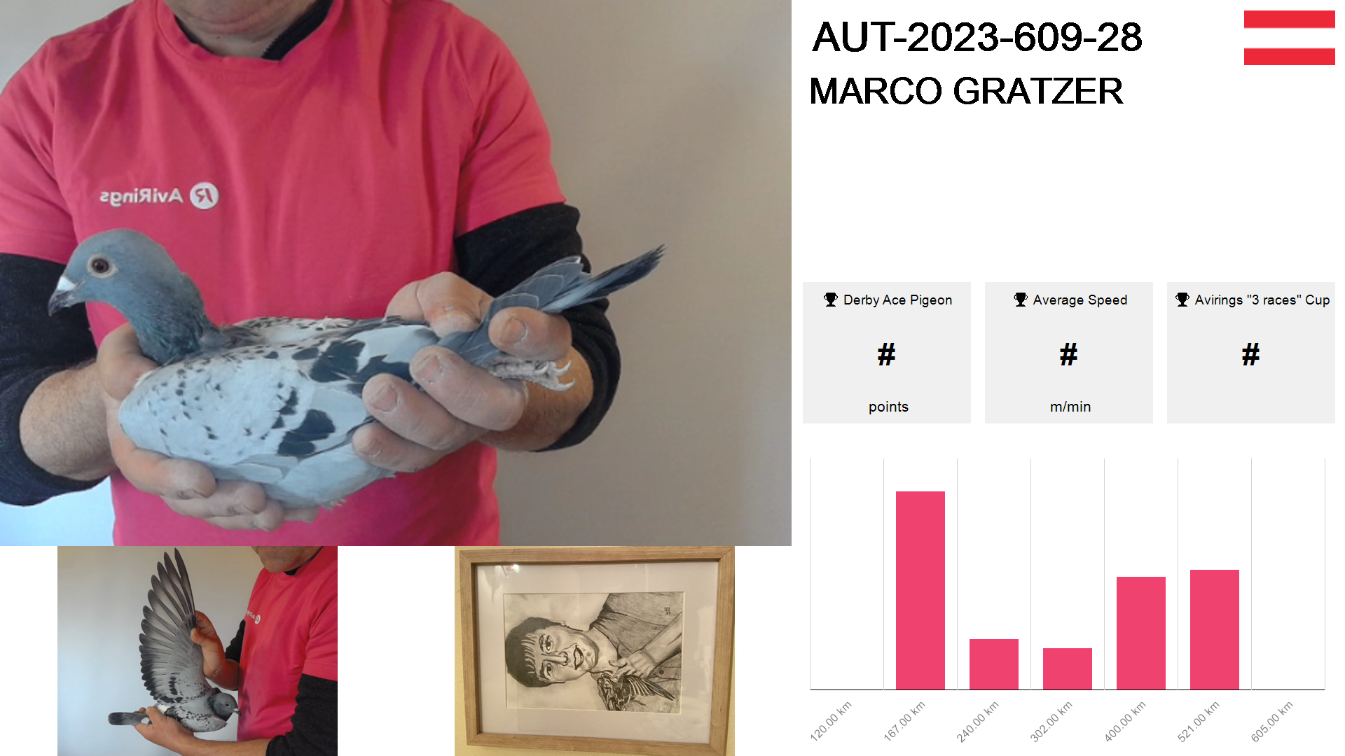 | Race | Position | Number of pigeons | Percent | Speed | Distance |