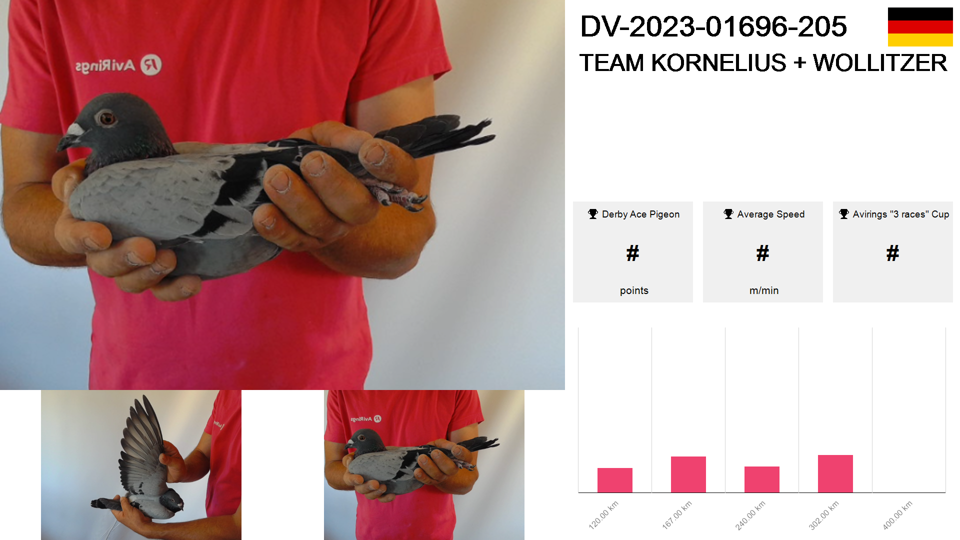 | Race | Position | Number of pigeons | Percent | Speed | Distance |