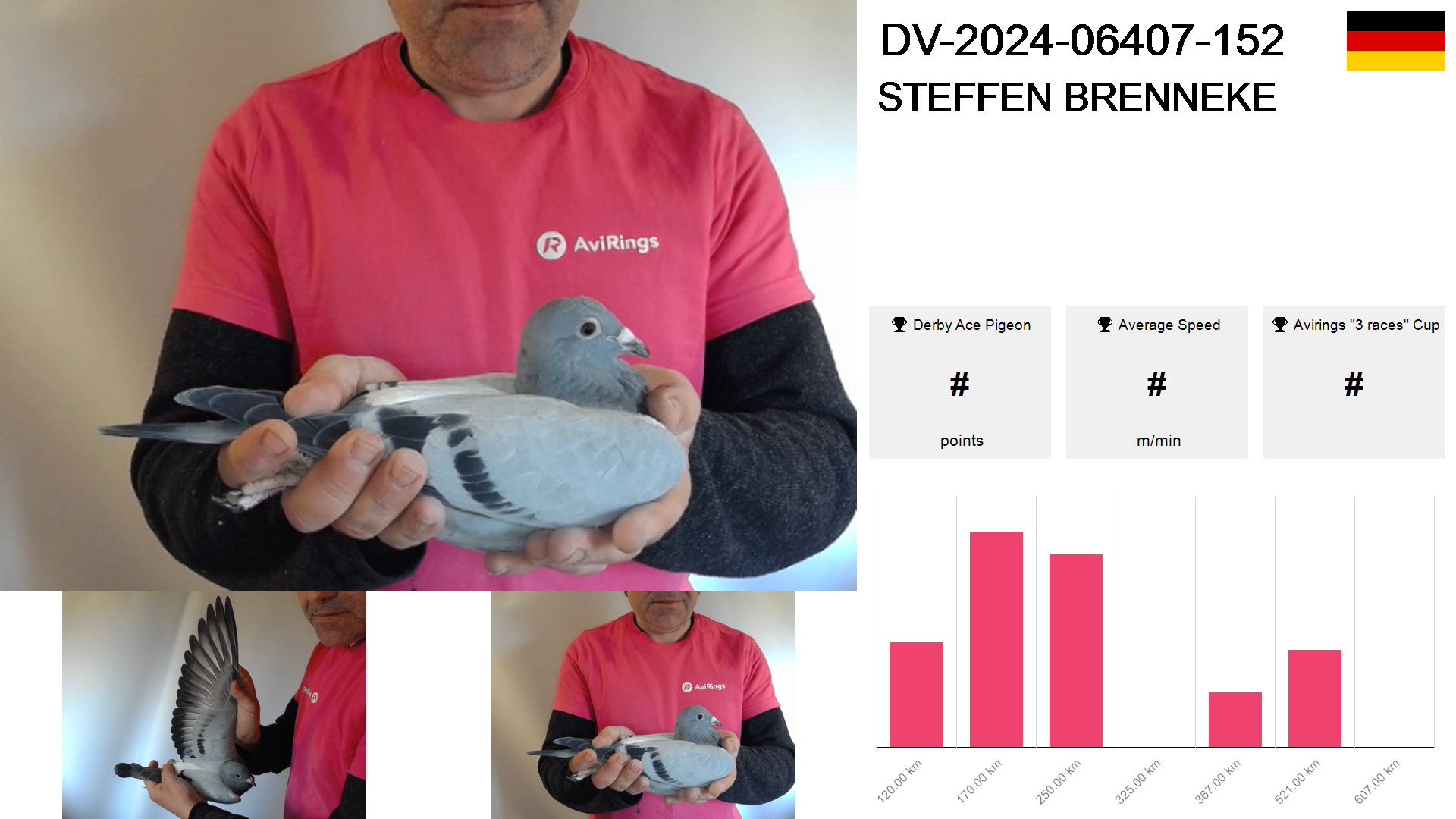 | Race | Position | Number of pigeons | Percent | Speed | Distance |
