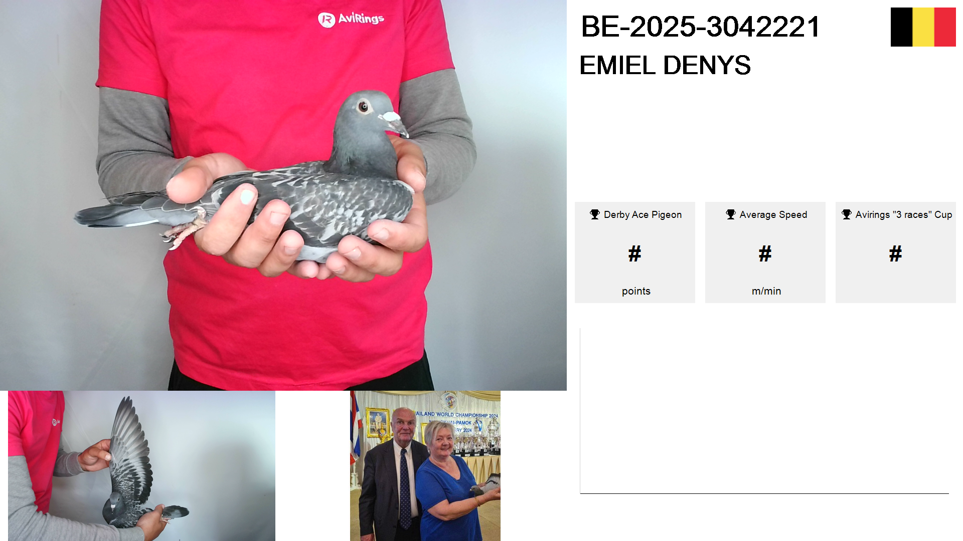 | Race | Position | Number of pigeons | Percent | Speed | Distance |