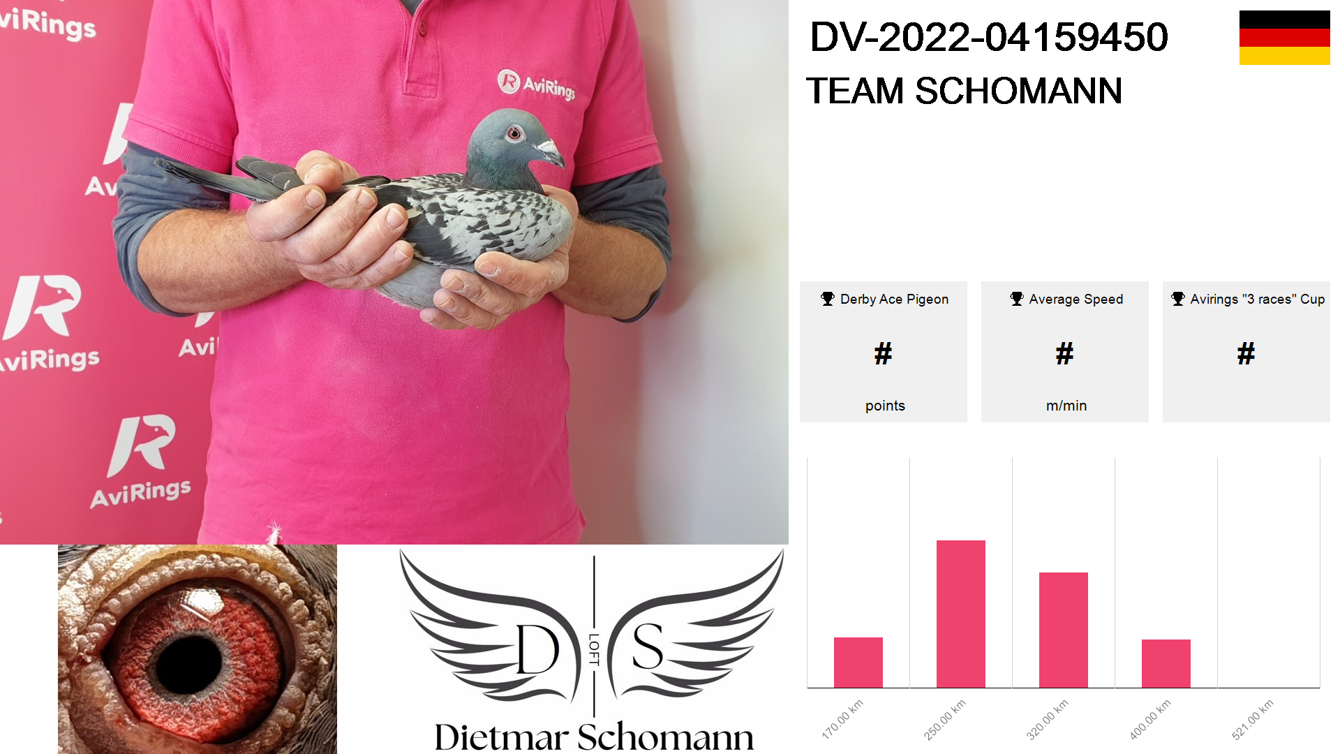 | Race | Position | Number of pigeons | Percent | Speed | Distance |